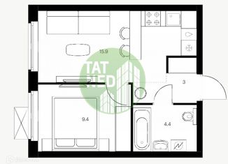 Однокомнатная квартира на продажу, 34.9 м2, жилой комплекс Южный Парк, 4.1