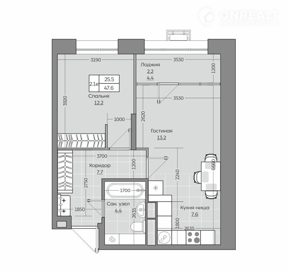 Общая площадь 47.7 м2