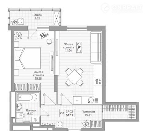 Жилая площадь 27 м2