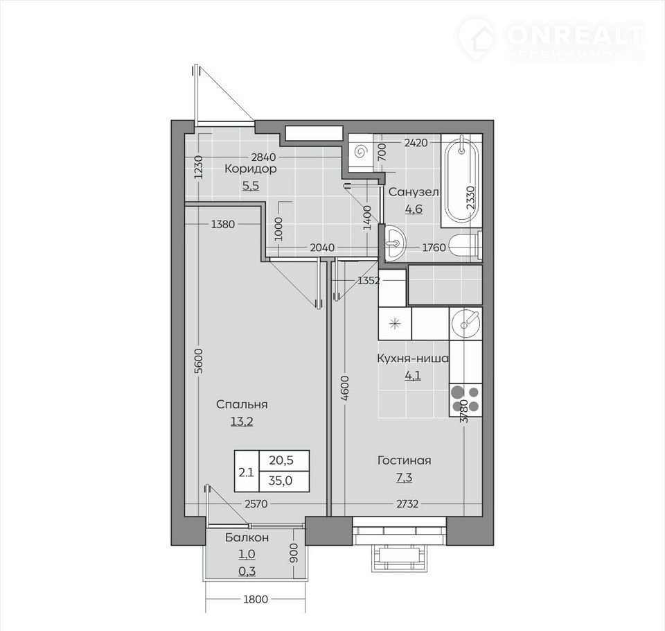 Общая площадь 35 м2