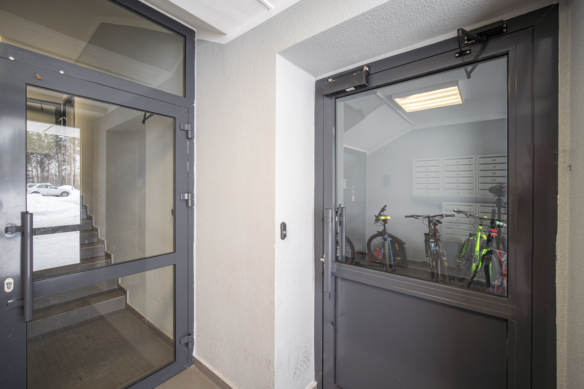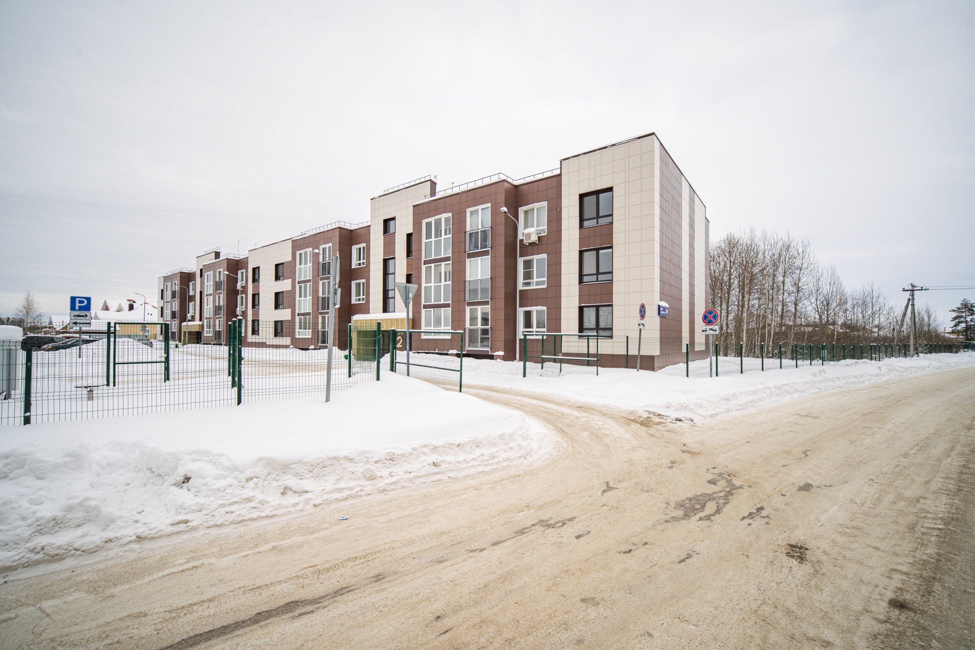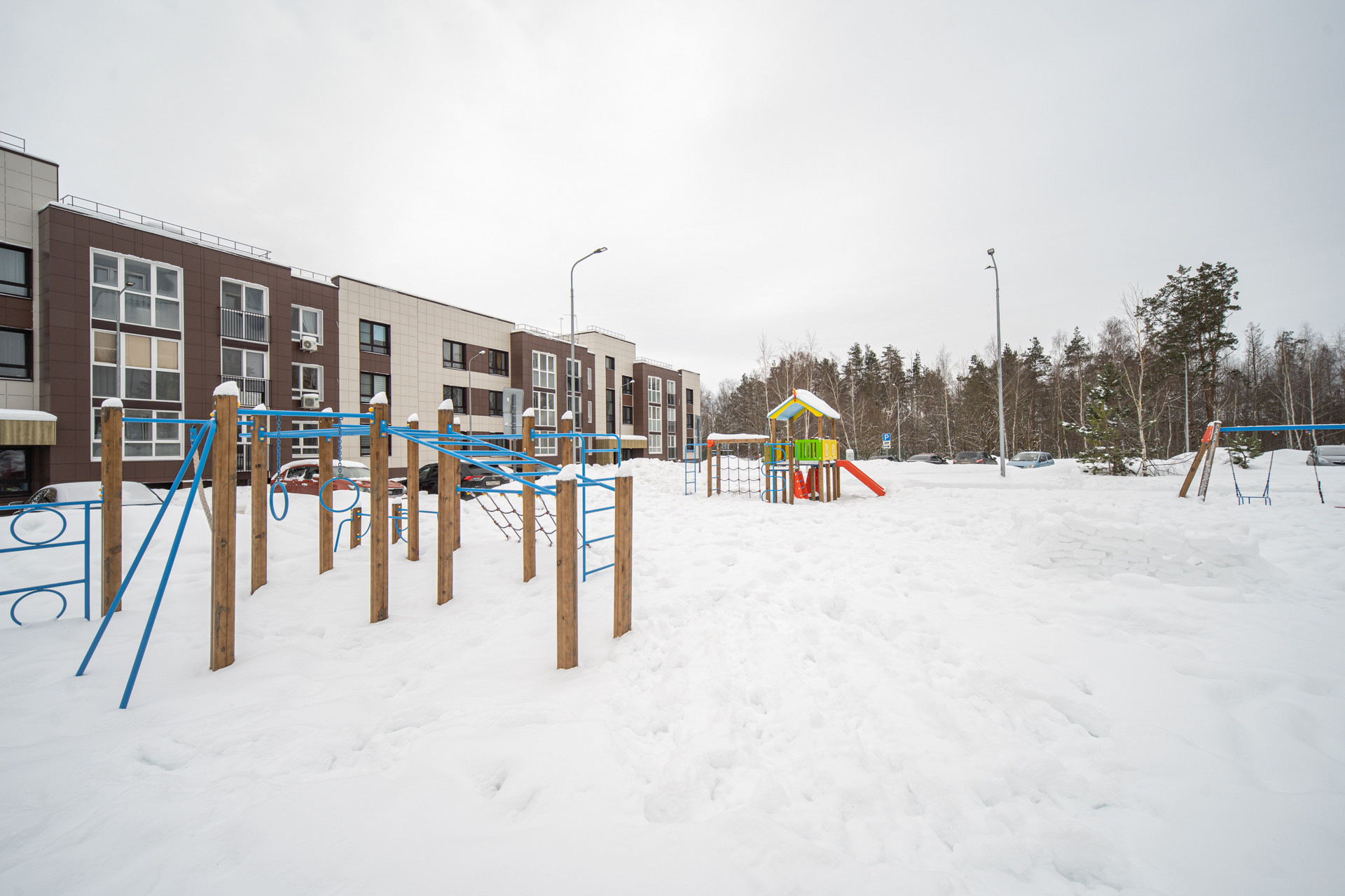 Сам дом располагается в живописном и тихом уголке, из окон квартиры прекрасный вид на лес. Ухоженная придомовая территория, современные детские и спортивные площадки, обустроенные парковочные места для автомобилей и удобный заезд в сам комплекс.