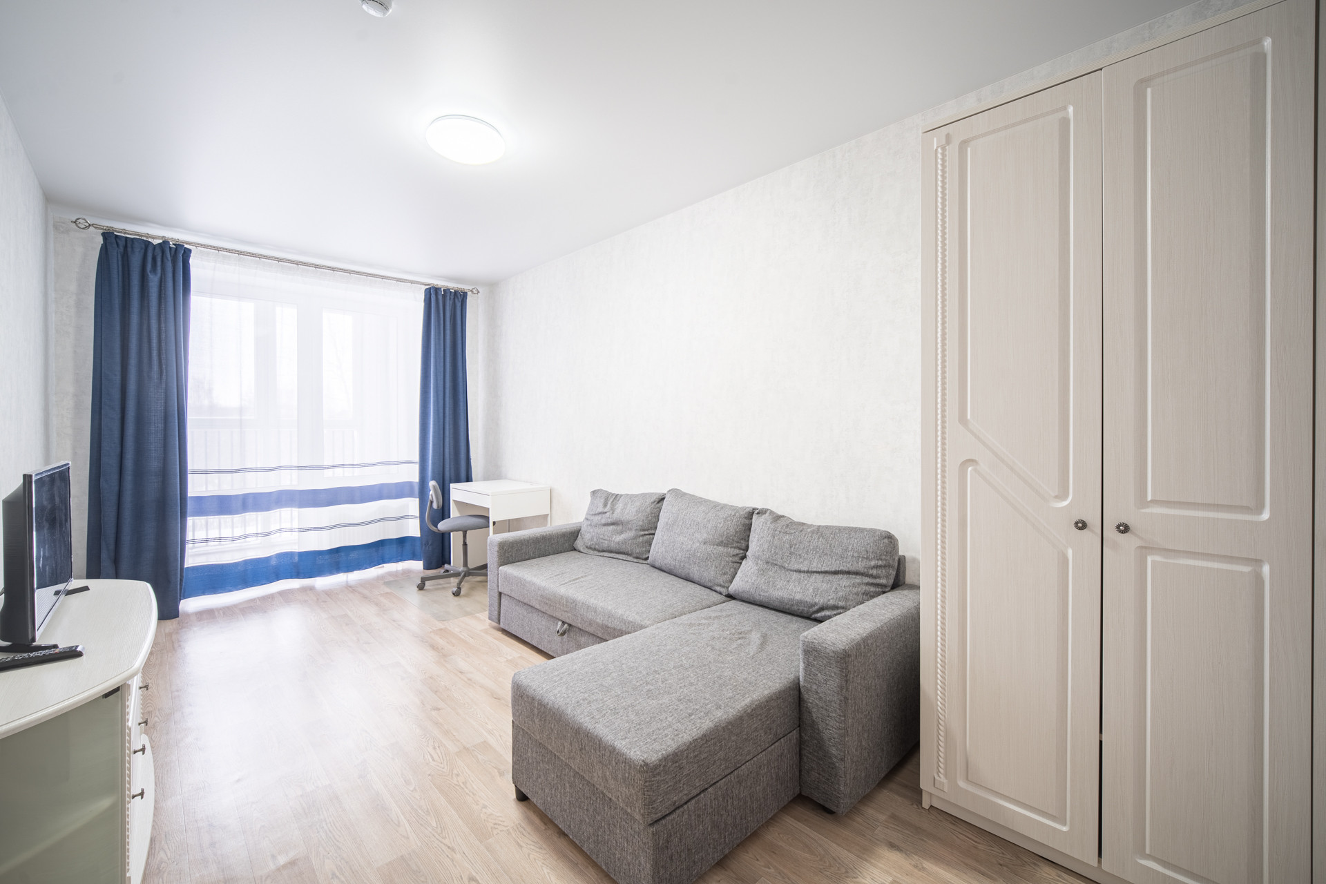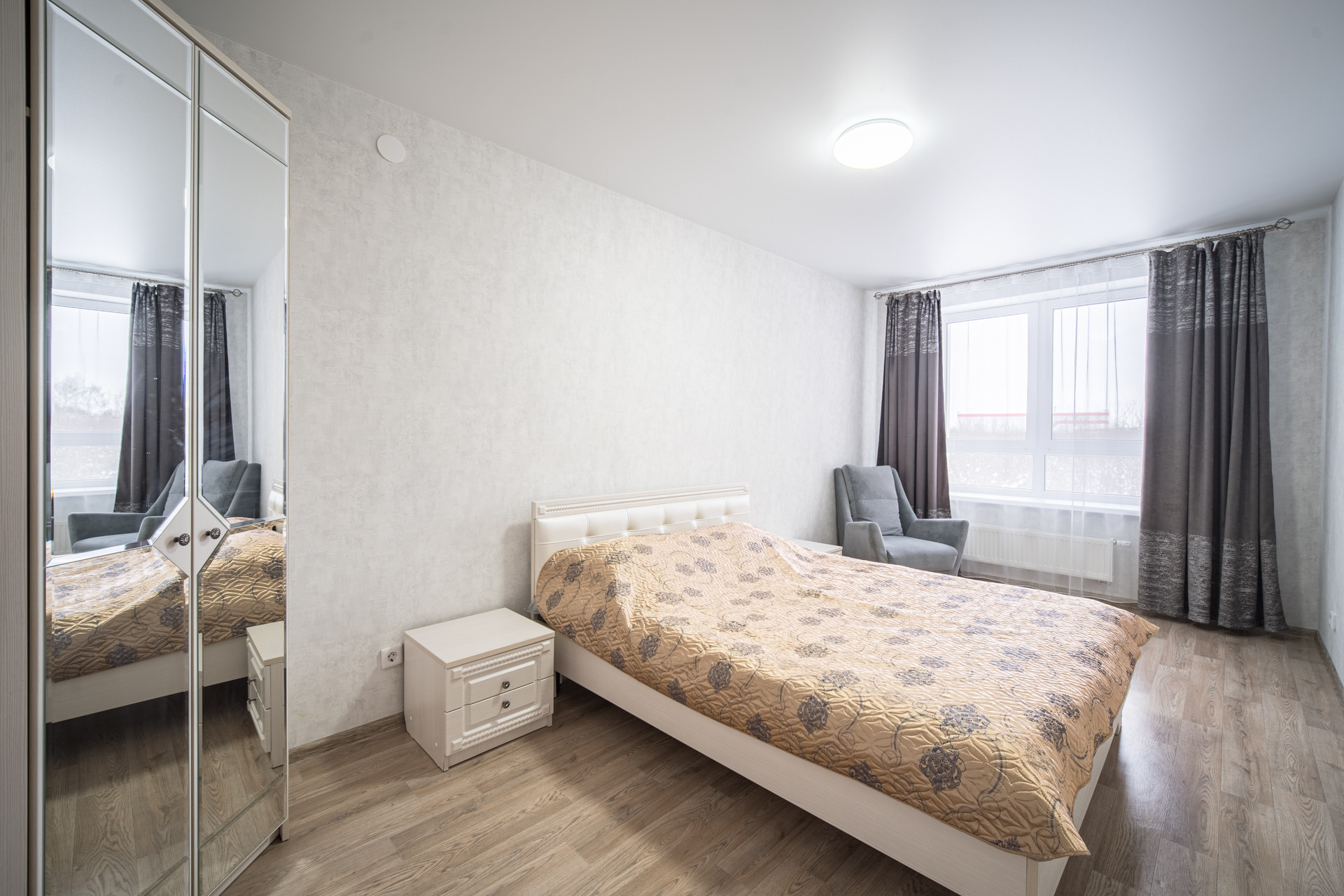 Взгляните на фото сама квартира большая и светлая, комнаты раздельные: гостиная – 15,7 кв.м, комната -15,8 кв.м, и просторная кухня -15,5 кв.м, есть отельная комната под гардероб или кладовку. Это современный тип недвижимости серии комфорт. Для вас эта квартира остается абсолютно со всей техникой и мебелью.