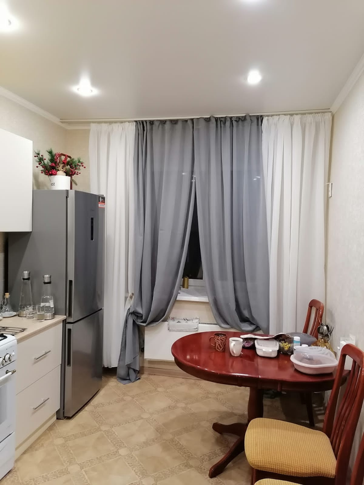 Натяжные потолки, принудительная вытяжка на кухне и в ванной.