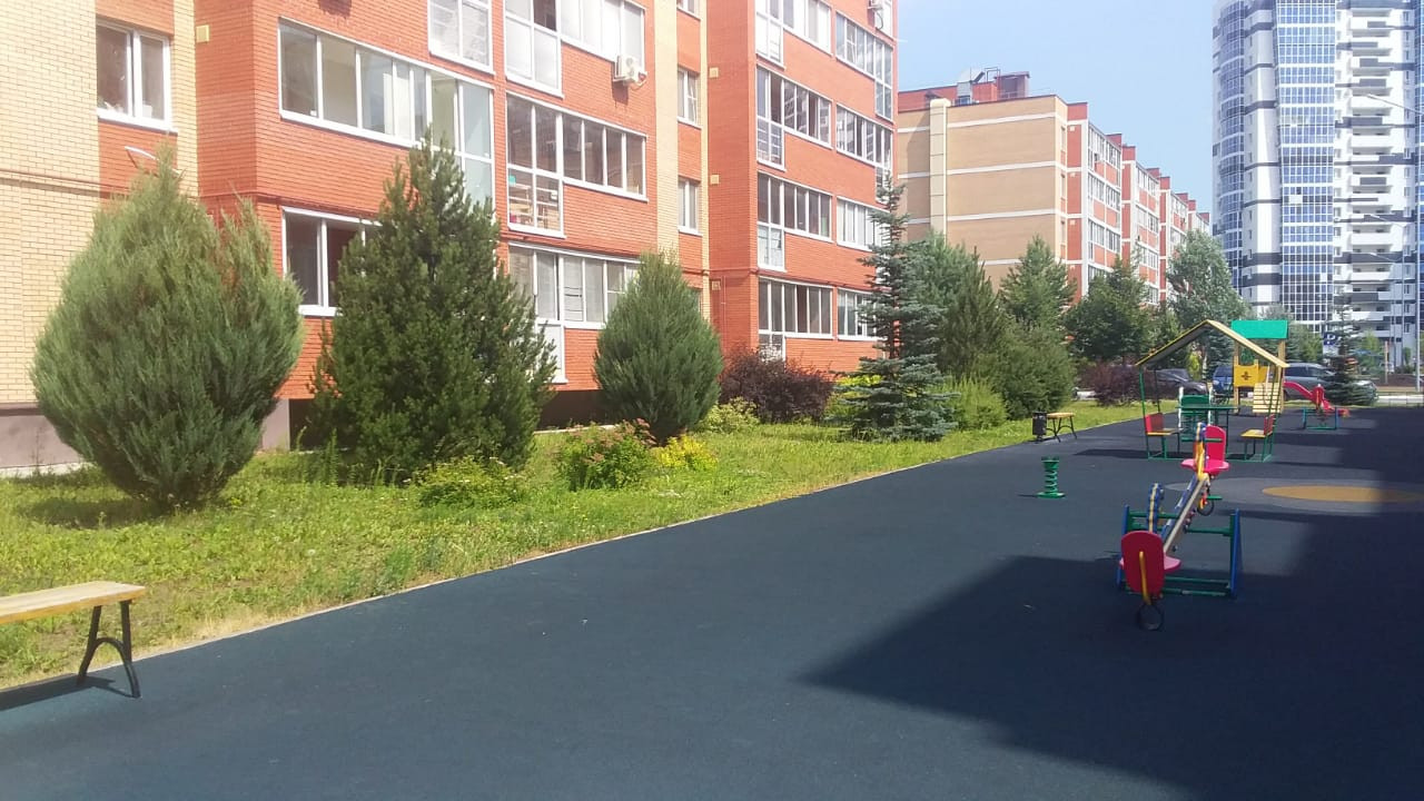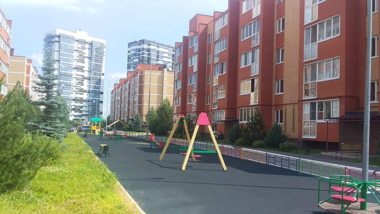 Территория жилого комплекса облагорожена: хвойные и лиственные насаждения, ухоженный газон, детские и спортивные площадки с тренажерами, теннисная, волейбольная, футбольная площадки, зона для занятий йогой, зона барбекю.