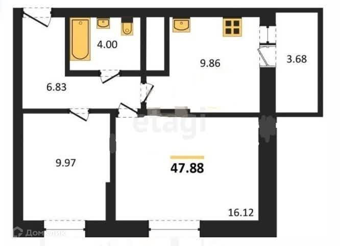 2-комнатная квартира, 46.5 м2, этаж 12 / 16, на продажу в селе Усады, Счастливая улица, 1