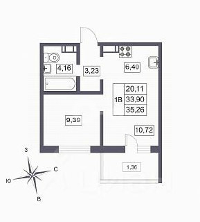 Общая площадь 38.43 м2
