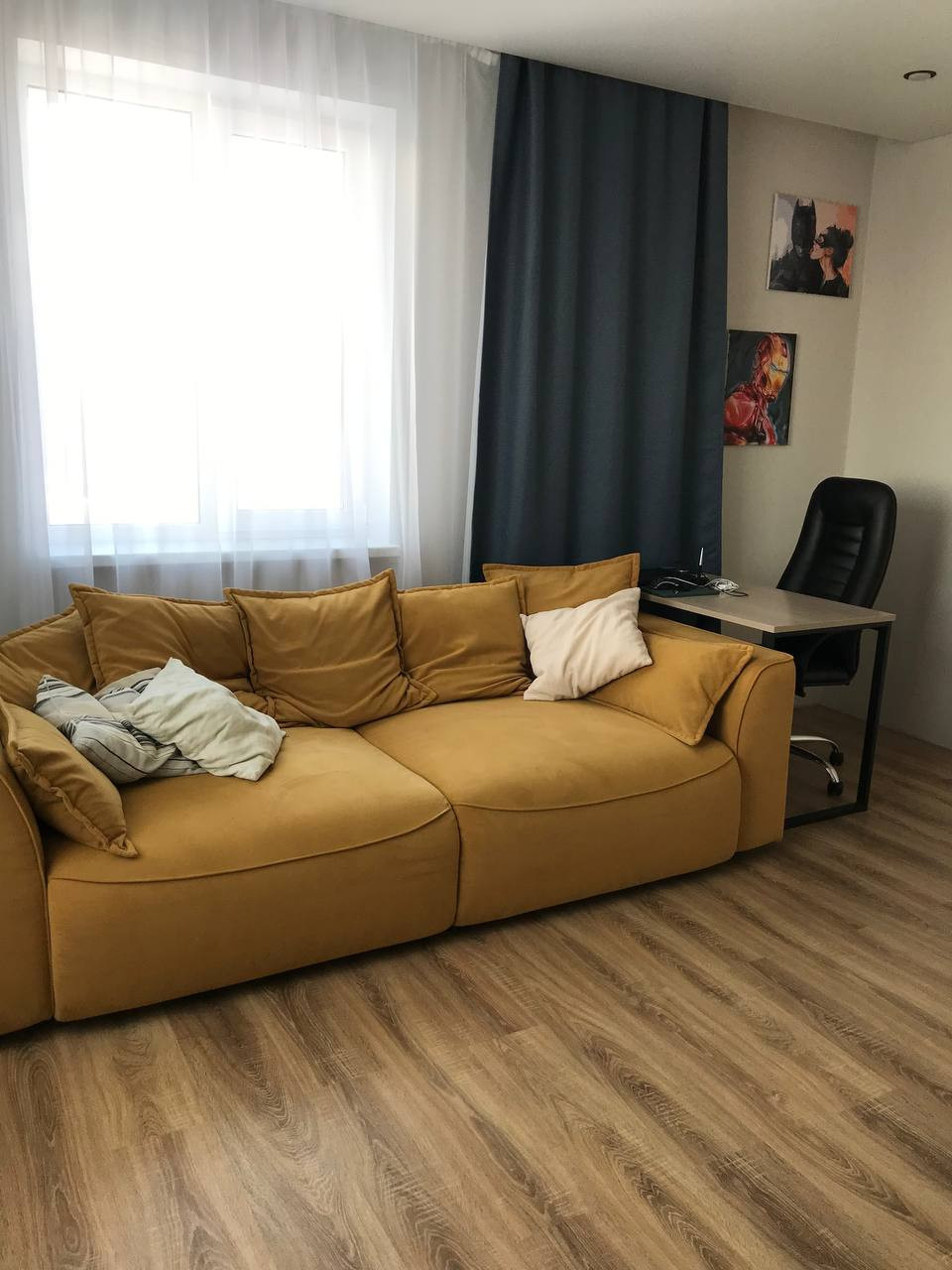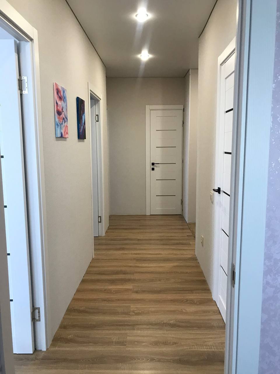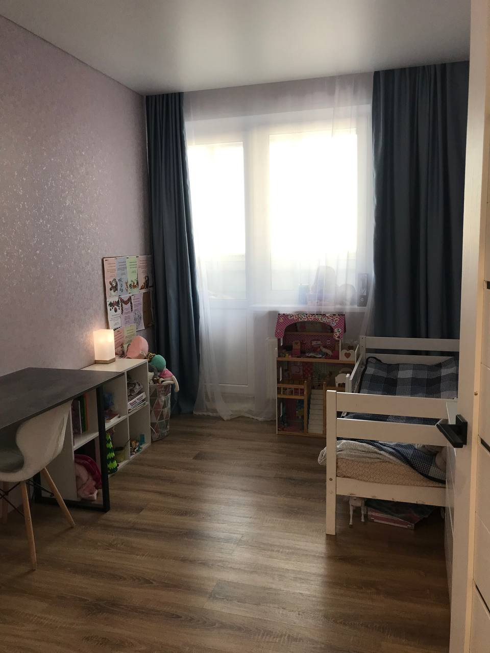 Ламинат 33 класса выложен бесшовно по всей квартире.
