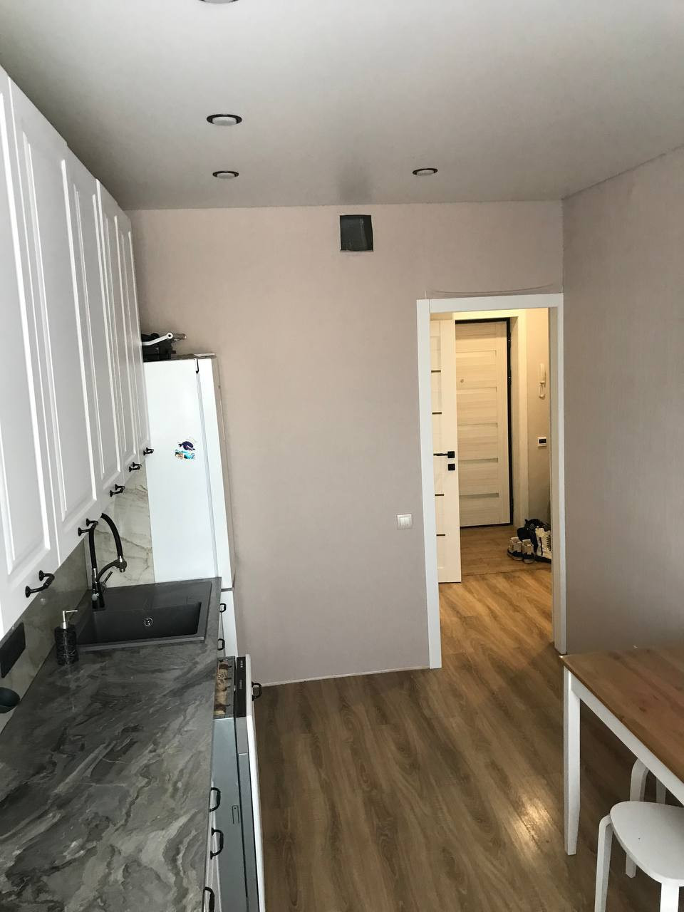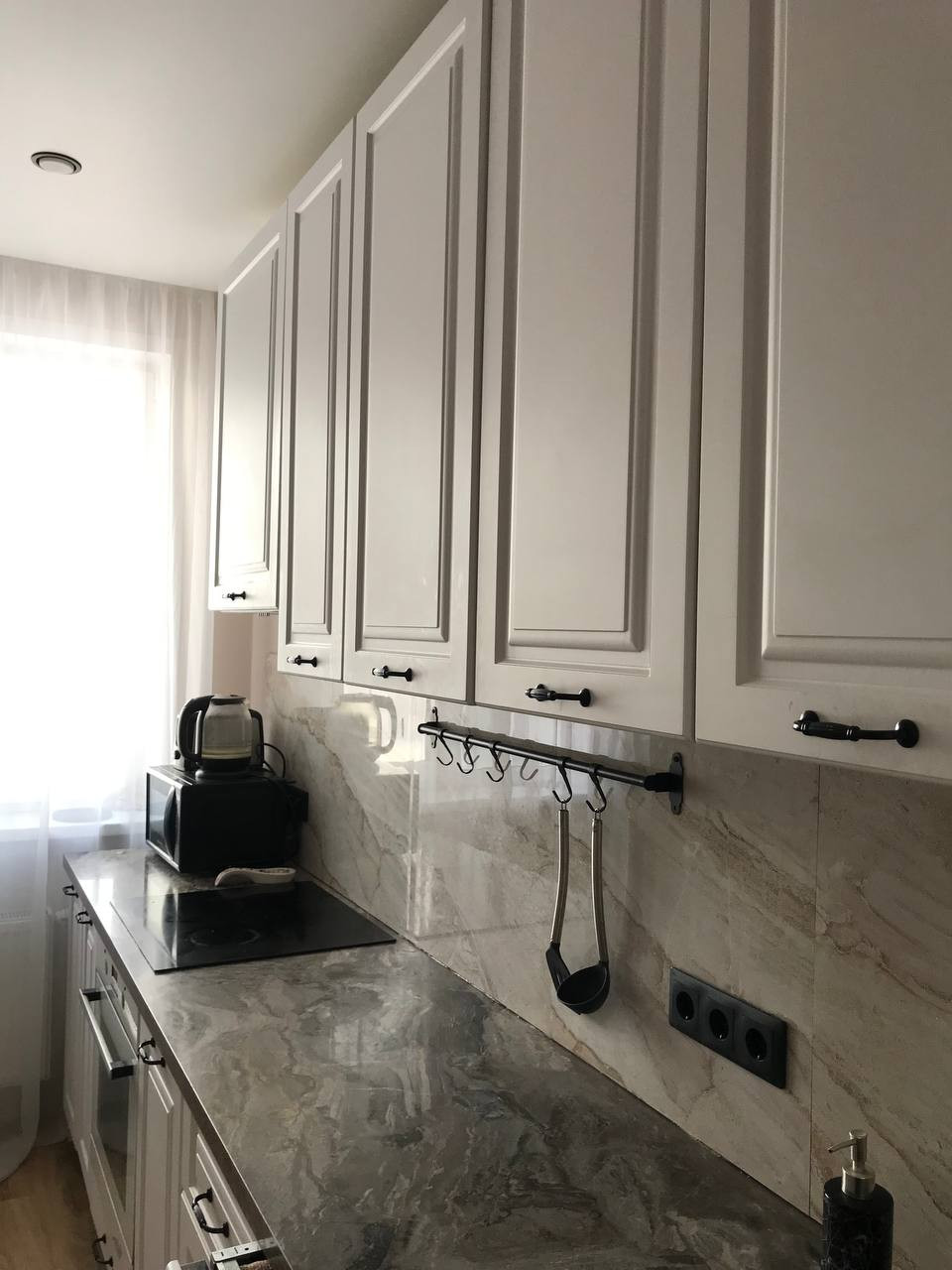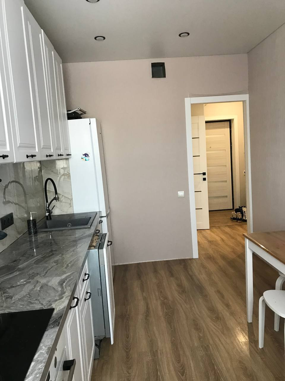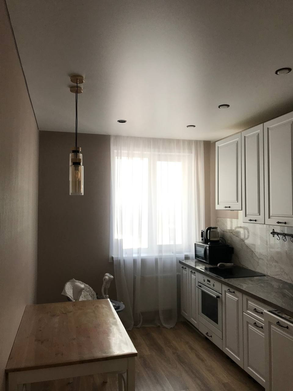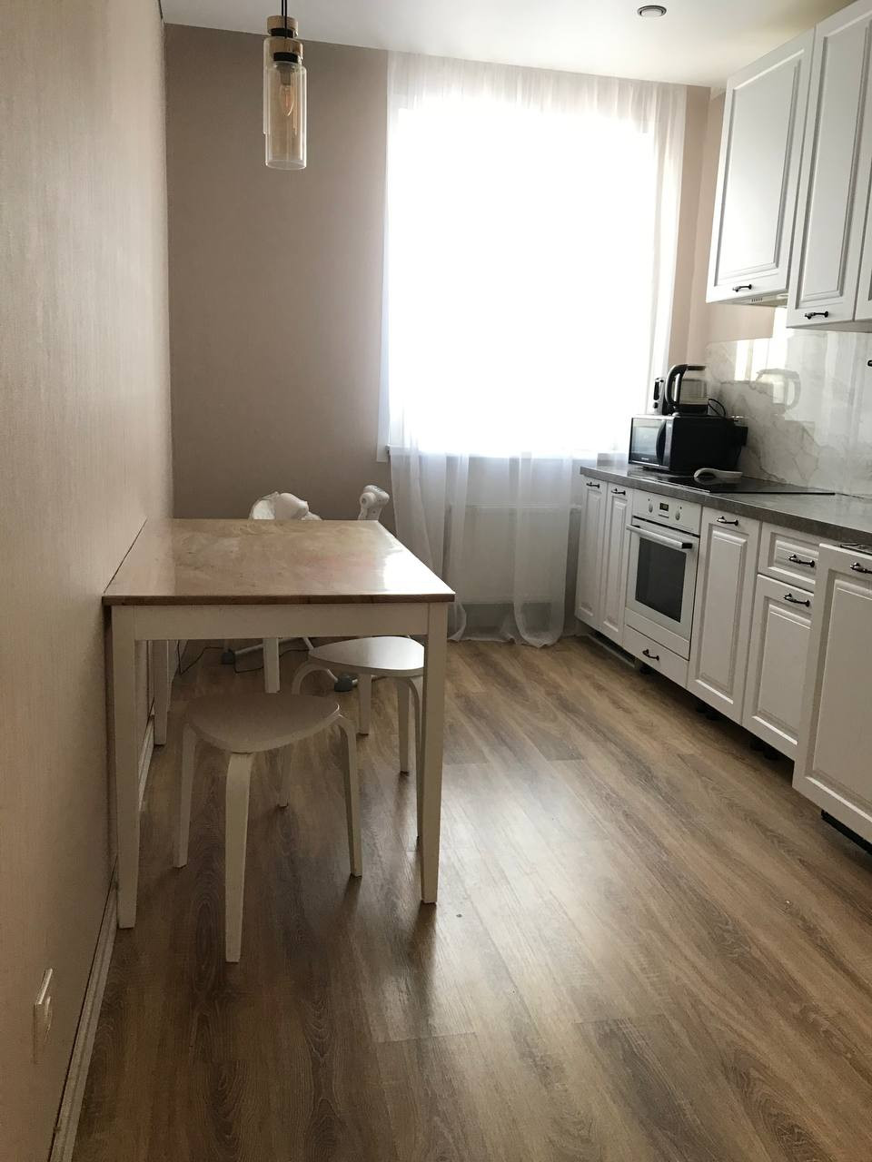 В квартире выполнен качественный ремонт в светлых оттенках: