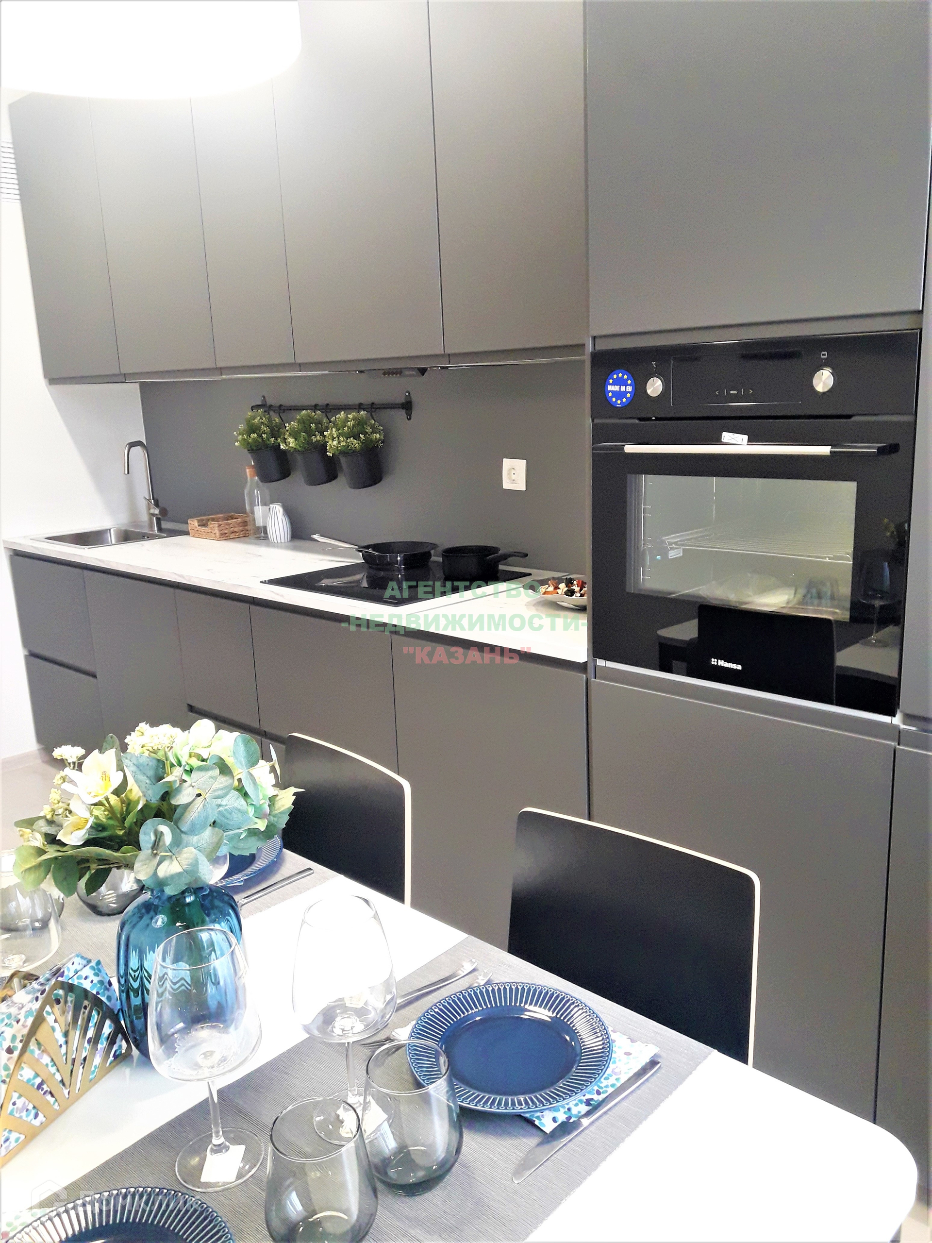 Остаётся только кухонный гарнитур с техникой.