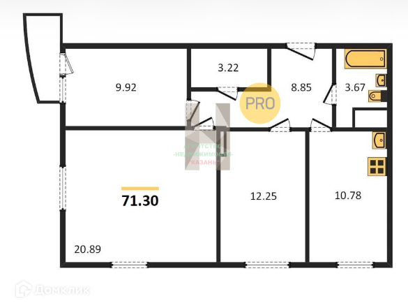 Общая площадь 71.3 м2