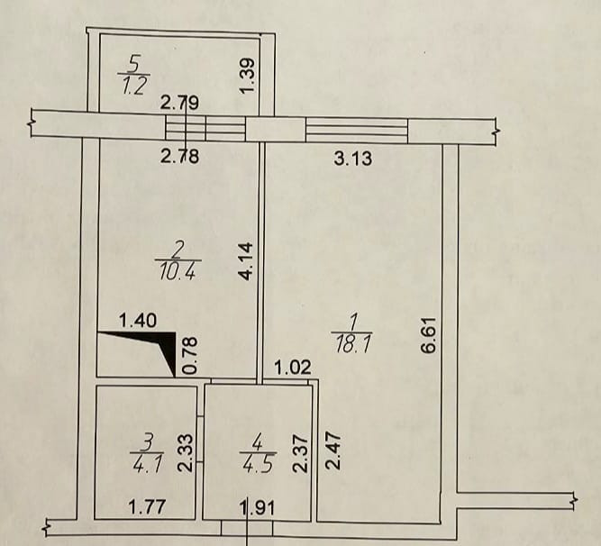 Жилая площадь 18.1 м2