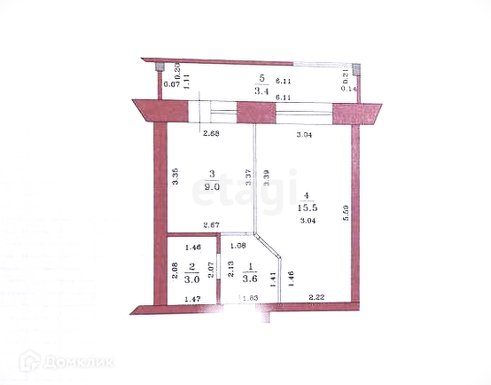 Балкон, лоджия 1 балкон