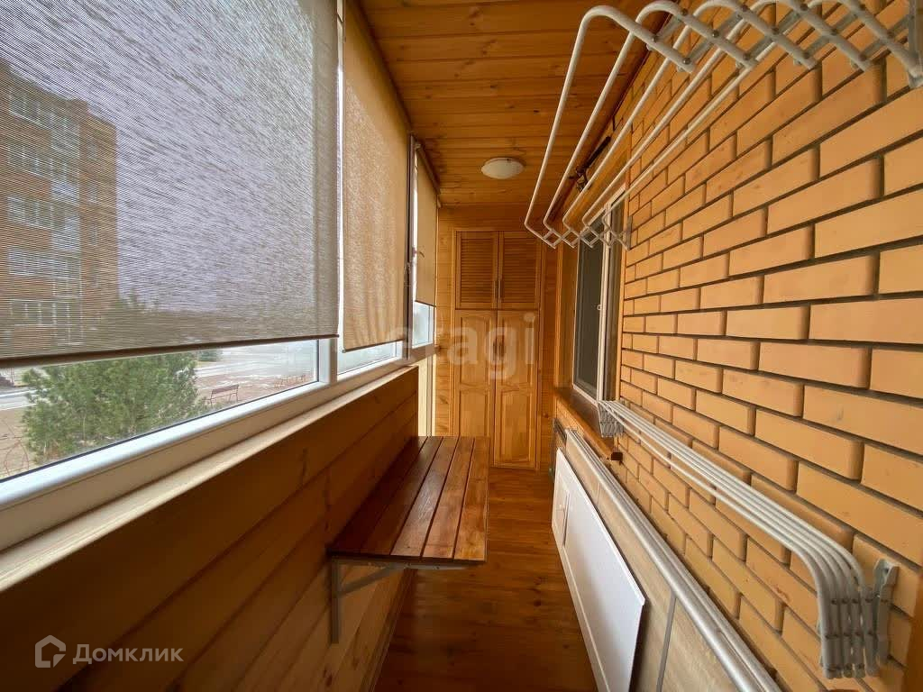 Лоджия утепленная, обшита деревом и оснащена вместимыми шкафами для хранения инструментов, заготовок или другой домашней утвари.