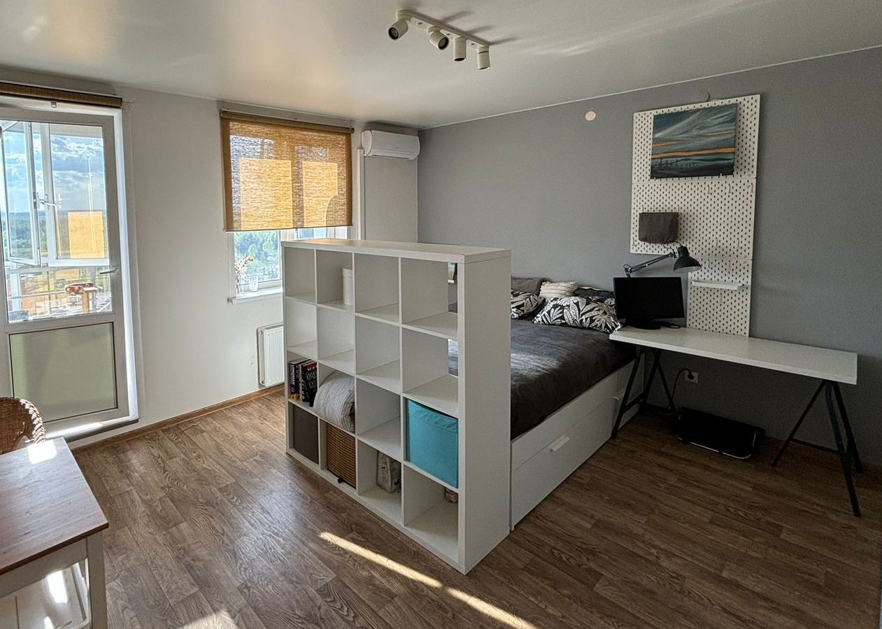 Продам уютную, светлую квартиру-студию в ЖК Южный парк. В комнате 2 окна, панорамный вид на лес, большая застекленная лоджия для уютных летних вечеров! Квартира с хорошим ремонтом, остается вся мебель (ИКЕА) и техника. В собственности одного хозяина с момента постройки дома, жили сами. Тихие интеллигентные соседи, чистый подъезд, лифт, колясочная, ухоженная придомовая территория. Всегда есть свободные парковочные места! Во дворе шикарная детская площадка, в шаговой доступности остановка электрички - до центра города всего 17 минут (быстрее чем на машине), по утрам и вечерам с интервалом 30 минут. Ходит рейсовый автобус, остановка рядом с домом. В соседних домах магазины Пятерочка, Верный, Озон, Wildberries, пекарня. Работает детский сад.