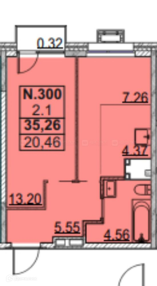 Общая площадь 35.2 м2