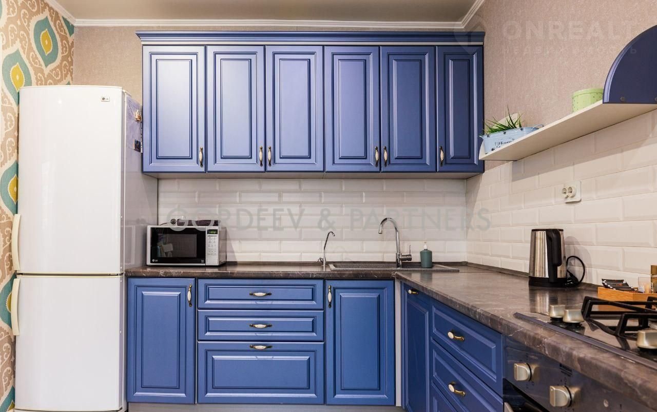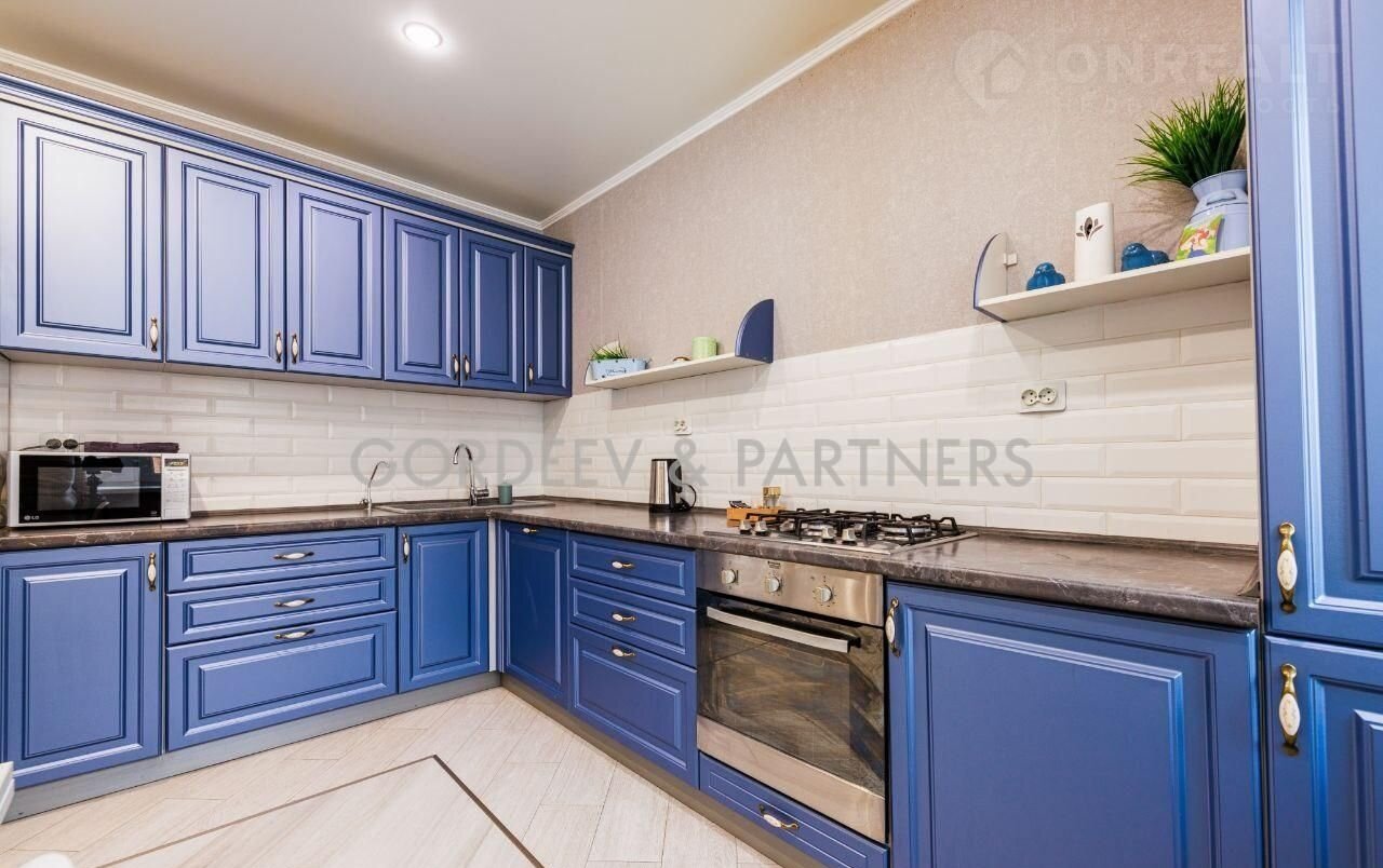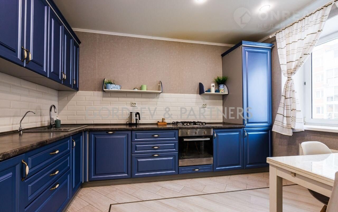 Встроенный кухонный гарнитур, богатого синего цвета