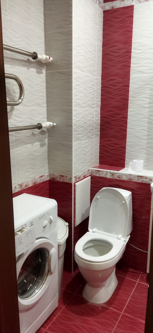 Санузел совмещенный, есть стиральная машина.(установлен водонагреватель , в случае отключения горячего водоснабжения);