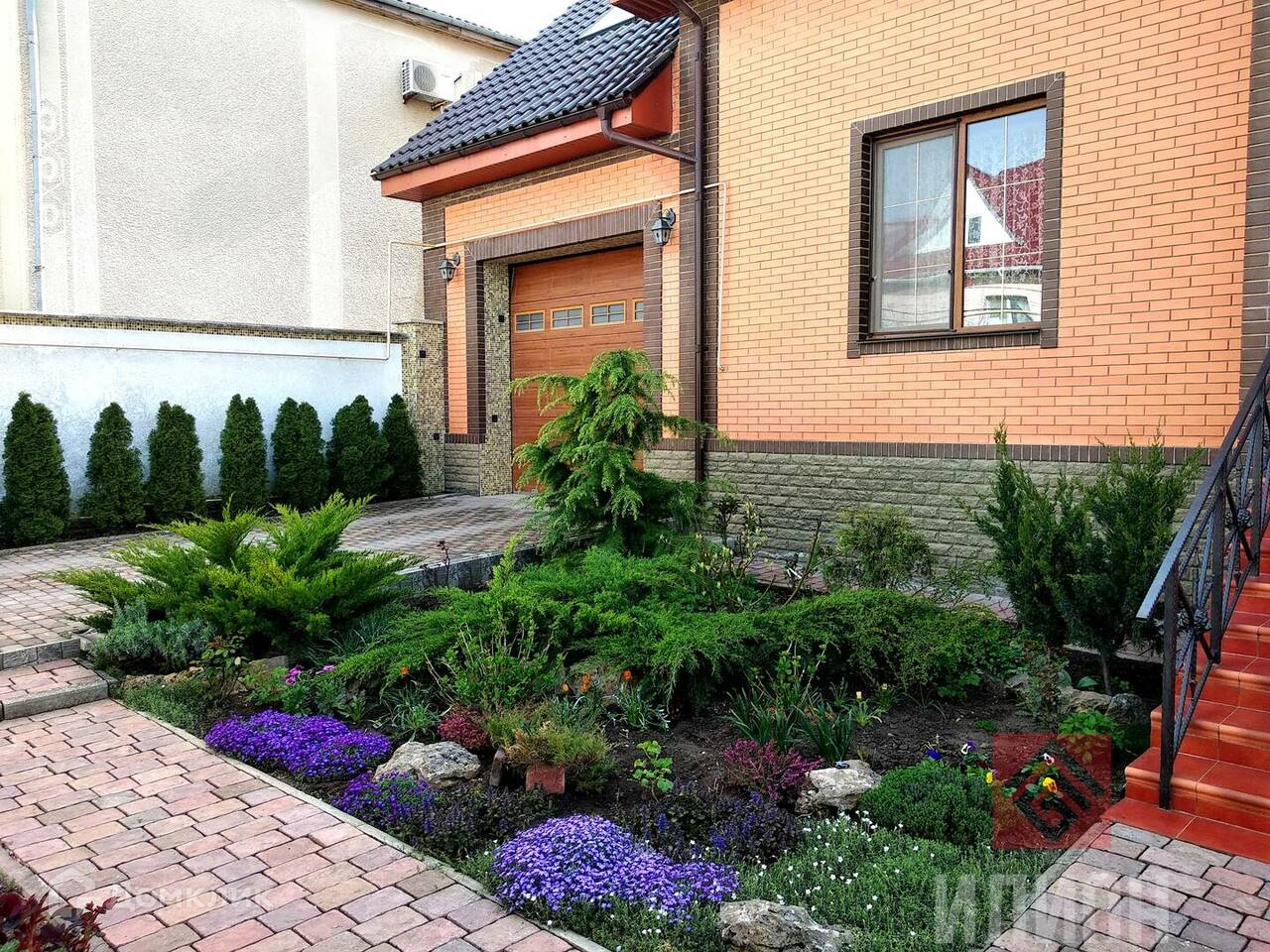 На участке выполнен ландшафтный дизайн с