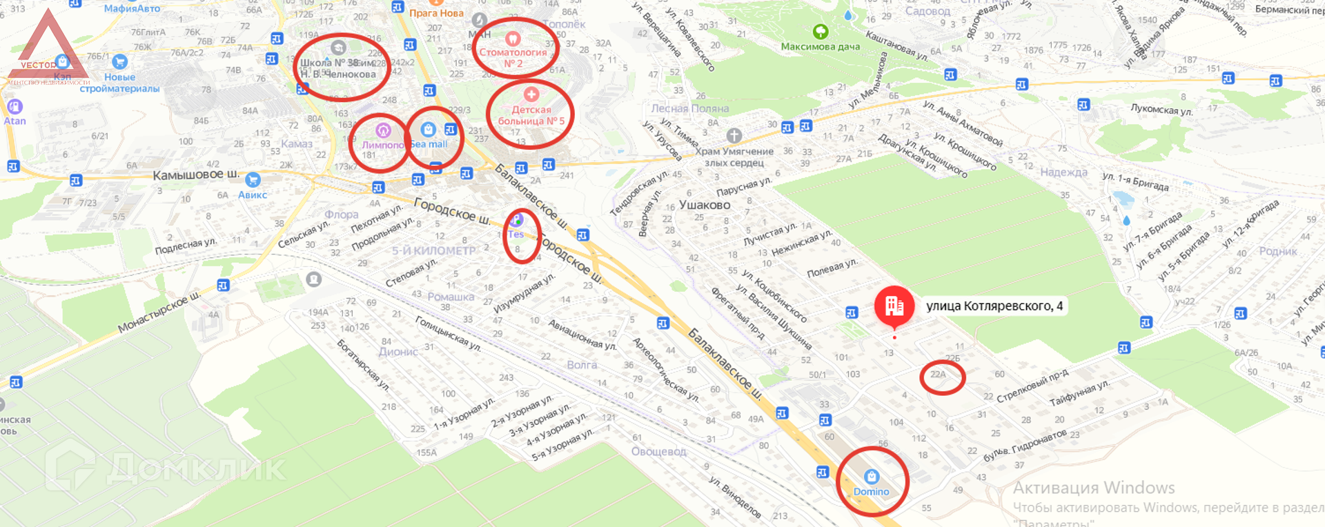 Очень обширная инфраструктура района! Недалеко от дома находятся: несколько продуктовых магазинов, парк с детской и спортивной площадкой, торговый центр "SeaMall", магазин продуктов "7м БЕЗЦЕН", супермаркет "ПУД", мебельный торговый центр "Domino", Средняя общеобразовательная школа № 38 имени Н. В. Челнокова, Детский сад №127, самый большой оптово-розничный рынок города для любых нужд, Детская городская больница и поликлиника №5, Роддом № 2, Стоматология № 2, кинотеатр "Фильмотека", Городская больница и поликлиника № 9. Остановки общественного транспорта в пешей доступности. До ближайшего пляжа 15 минут езды.