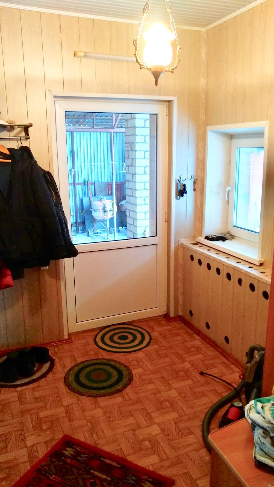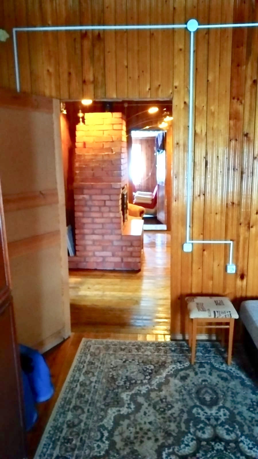 В доме также есть гараж и кладовая с отдельными входами. Все коммуникации центральные, слив - яма. В доме новая электрика с несколькими линиями под разное напряжение. Установлен котёл. Есть возможность надстроить второй этаж.