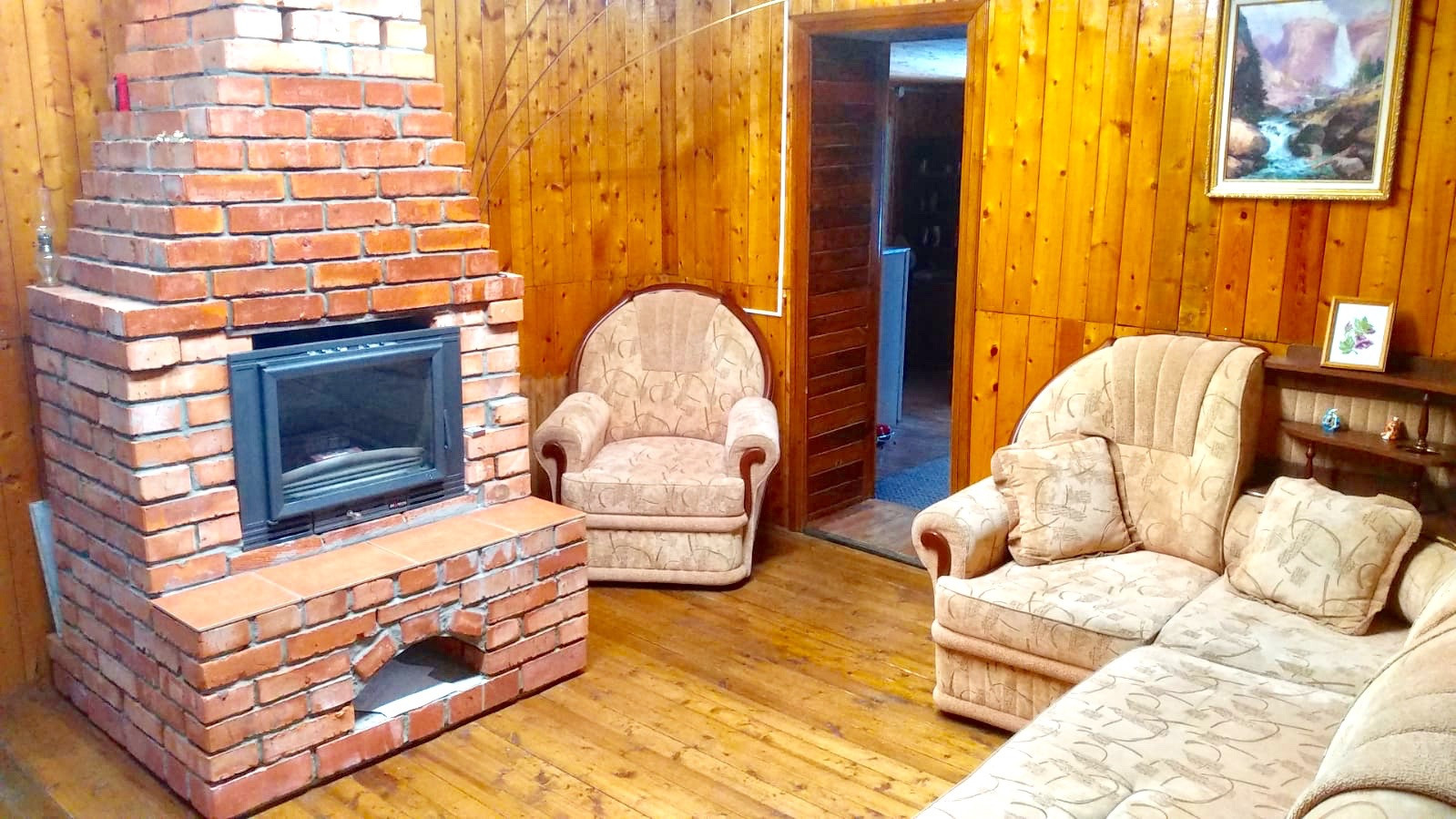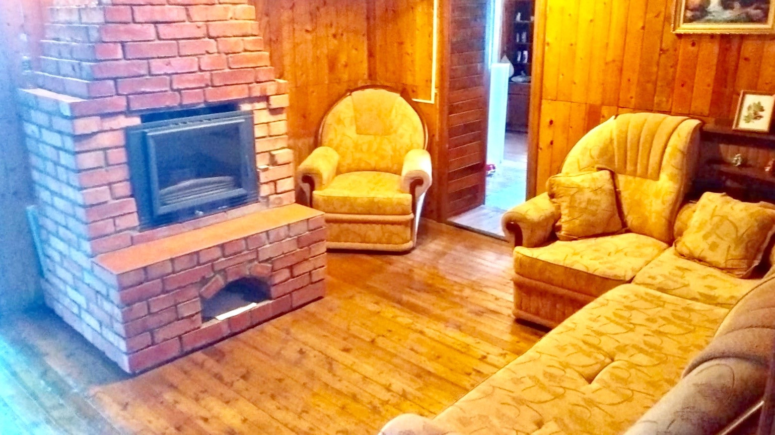 В доме две спальни, кухня-гостиная, гостиная с камином, баня с отдельным выходом во двор.