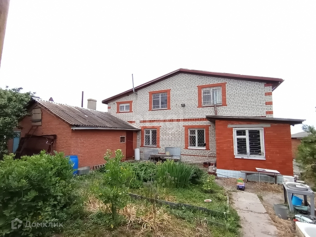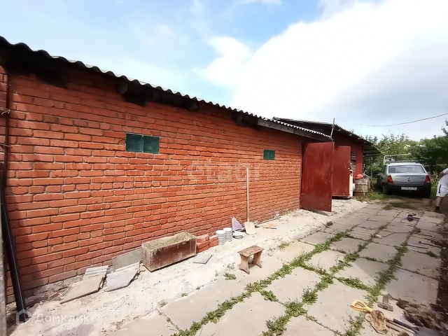 Во дворе стоит кирпичный гараж и хозблок.