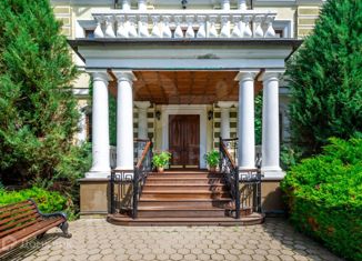 ID 7467. Особняк с собственным садом Дом в стиле ампир в элитном поселке. Ландшафтный дизайн двора и лесные деревья на участке, отдельный домик для охраны. Кованый забор. Общая площадь участка 33 сотки. Площадь основного дома: 502 кв.м., высота потолков 3,2м Функционально зонированное пространство: 1 этаж, обустроенный для приема гостей: большая кухн... |