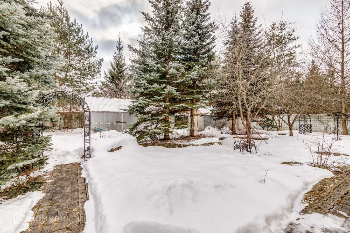 Небольшой, но очень вместительный архитектурный ансамбль из двух домов: основного дома 318 кв.м. и отдельно-стоящего SPA -комплекса, площадью 260 кв.м. SPA-комплекс (он же гостевой дом) включает: спальню, кухню, бильярдный зал, два сан-узла, финская и турецкая бани, душевые кабины, бассейн (10х4 м), зона отдыха с баром. Полы первого этажа с водяным подогревом. Здесь же расположен гараж с мойкой площадью свыше 50 кв. м. на 2 м/м. На территории растут сосны, кедры, туи, сирень, боярышник, яблони, вишня, смородина, установлен парник. Участок огорожен забором из бетонных блоков. Номер в базе: J11360
