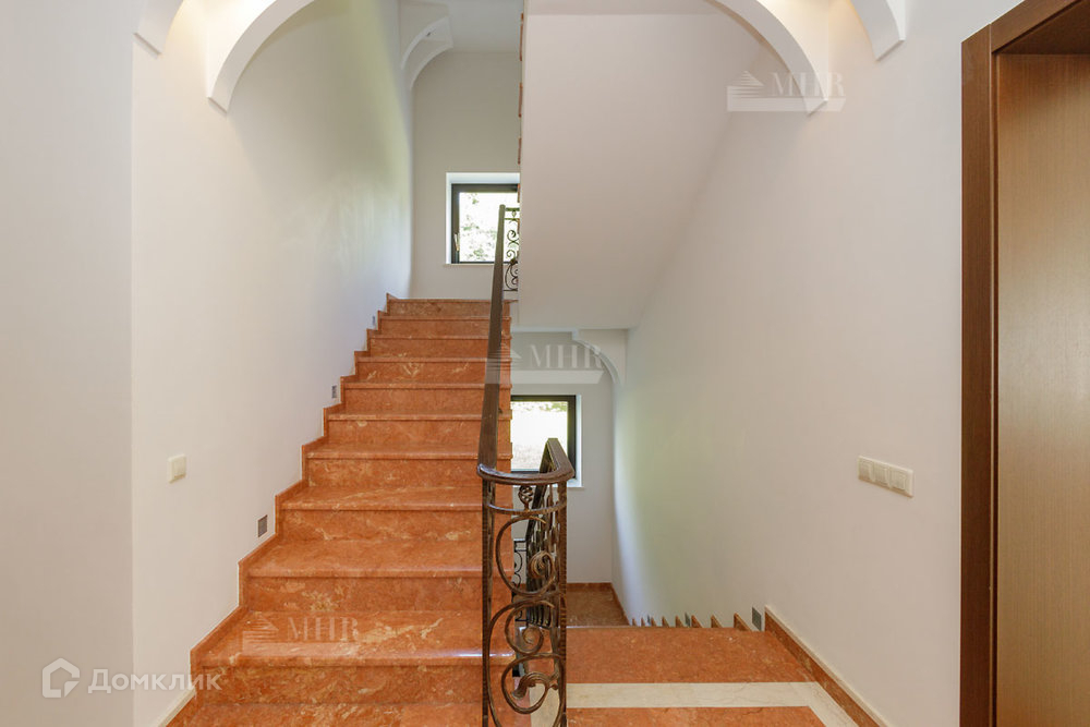 Главный дом площадью 600 кв. м. имеет 3 этажа: 1-й этаж, 2-й этаж, цокольный этаж и плоскую эксплуатируемую кровлю.
