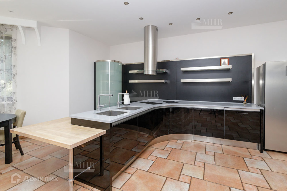 На 1-м этаже расположены: просторная прихожая, гардеробная, кабинет, кухня столовая, гостиная с камином и выходом на террасу, санузел. Кухня полностью оснащена мебелью и встроенной техникой .