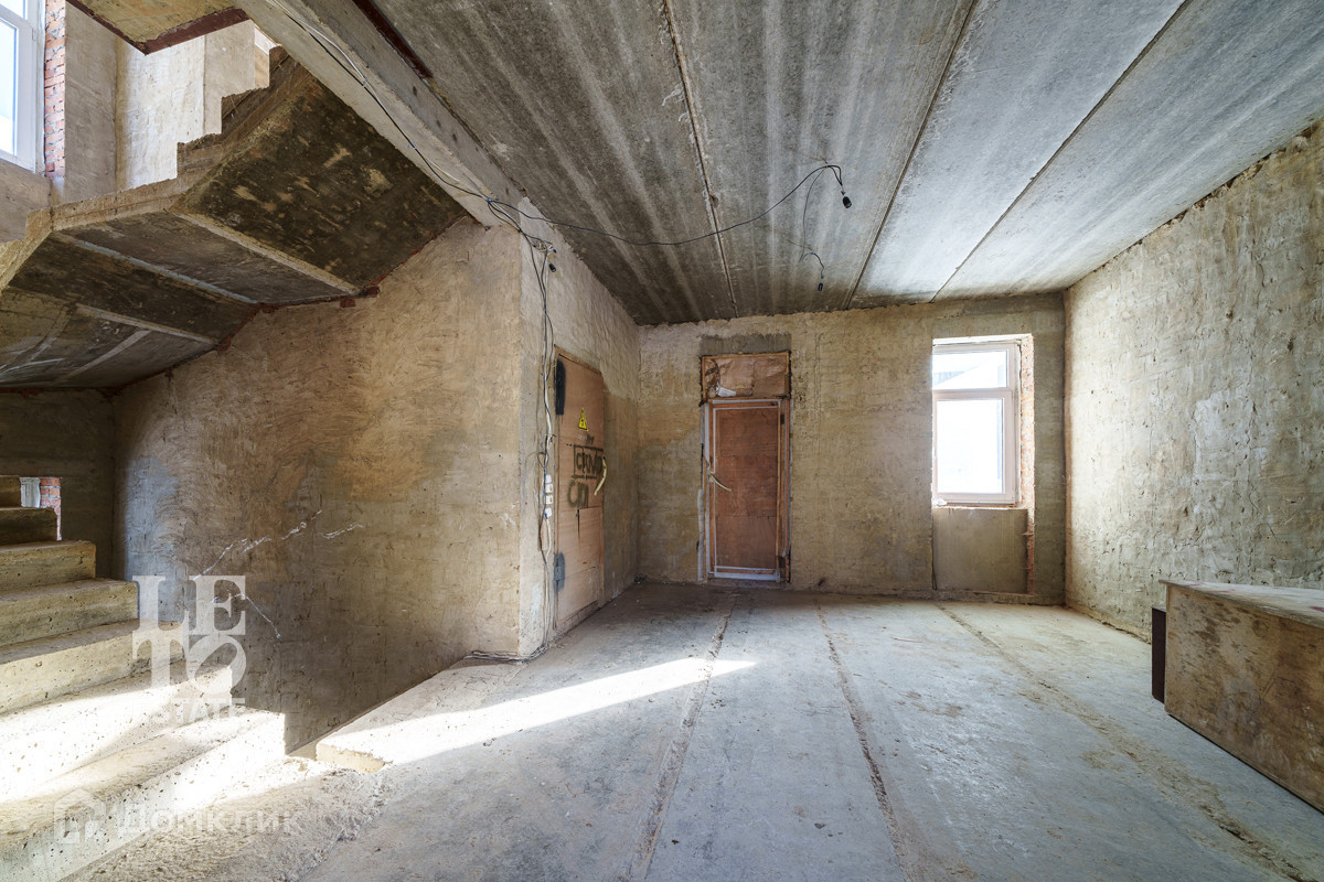 Дом построен в 2022 году из кирпича на монолитном фундаменте и с монолитными перекрытиями, фасад здания отштукатурен, крыша - металлочерепица. Заведены все необходимые коммуникации: Разведено временное электричество, подведен газ и установлено газовое оборудование, сделано разведение воды. Также в доме сделаны монолитные лестницы и стяжка пола.