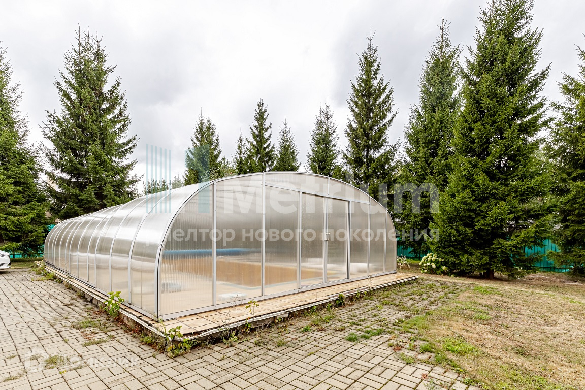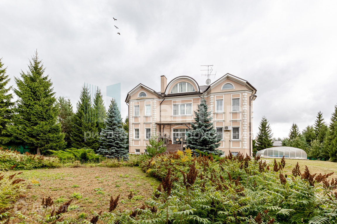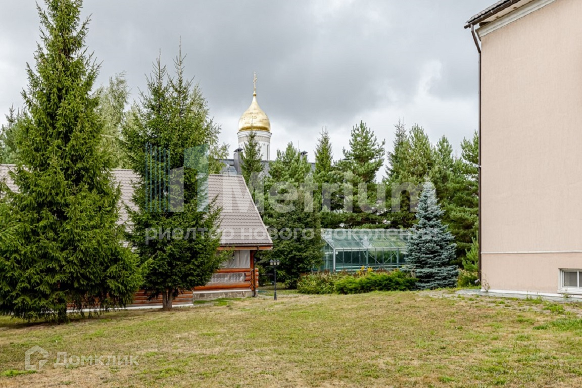 ID 11821 Участок в обжитом коттеджном поселке в самом сердце Рублево-Успенского шоссе. Ровный ландшафт. На участке расположены дом, деревянный банный комплекс, открытый бассейн и гараж.