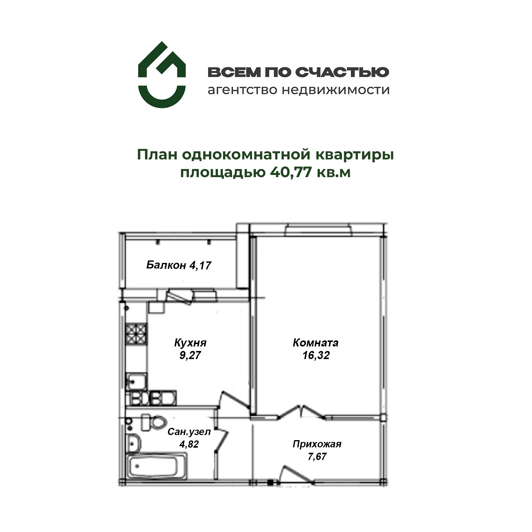 Общая площадь 40.77 м2