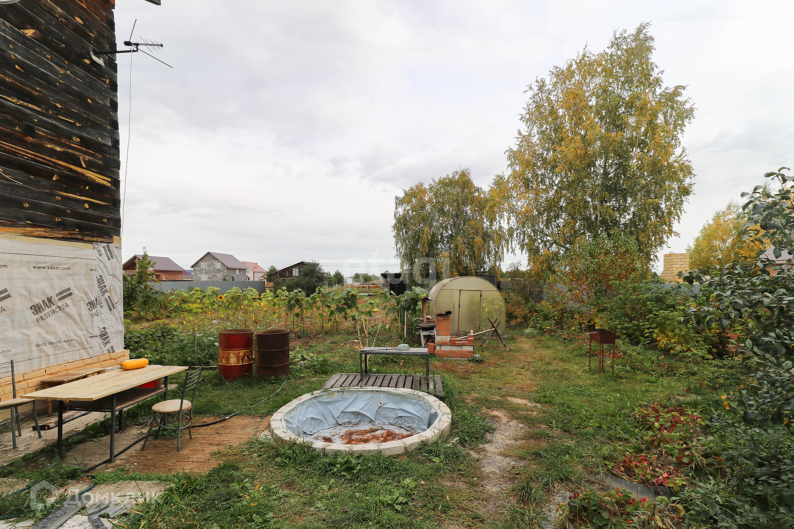 Есть сруб бани под ключ, осталось установить печь и пользоваться по назначению. Так же на участке имеется теплица, хозяйственный блок, курятник.