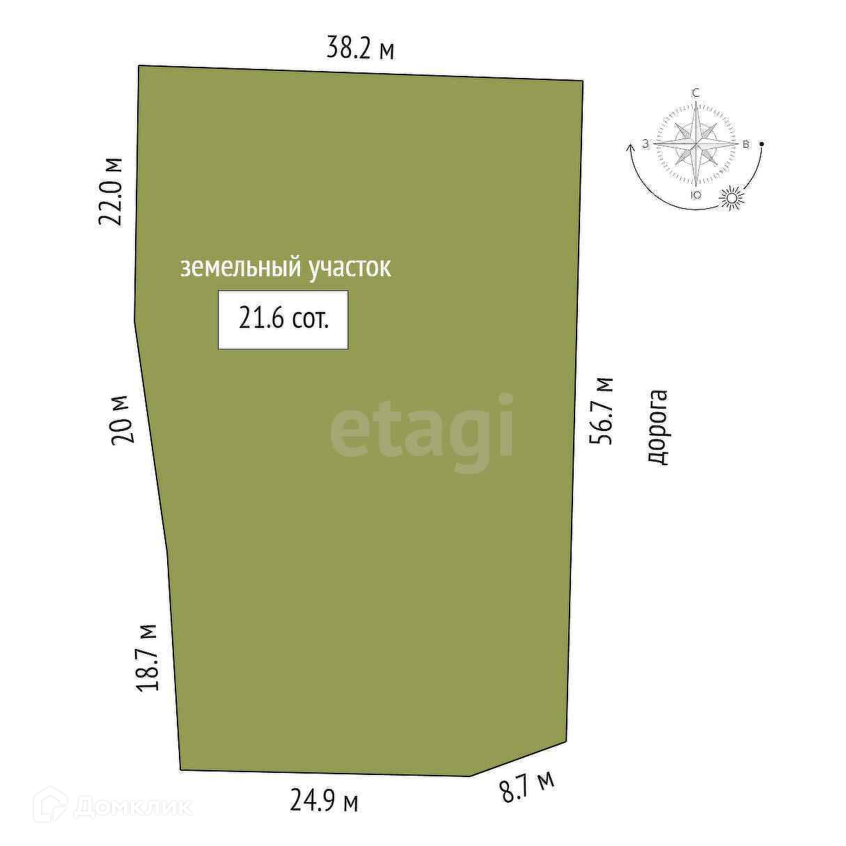 Площадь участка 21.6 сот.