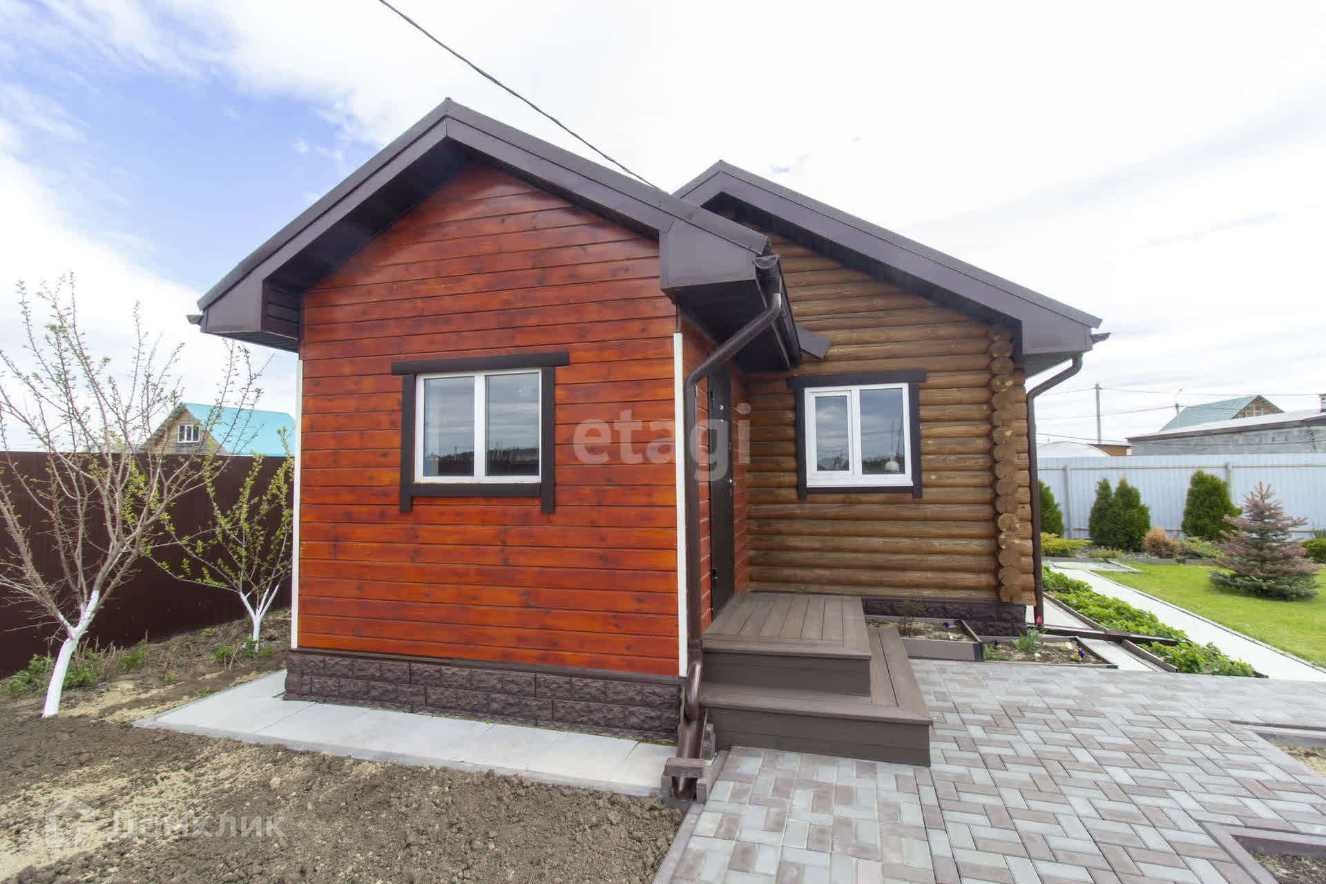 - Ухоженный участок с плодовыми деревьями и цветами.