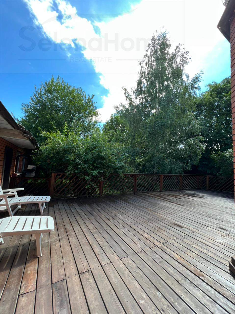 На участке плодовые деревья - яблони, липы, дубы, березы, туи, сосны, сирень, рябины, боярышник.