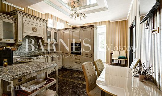Всего в доме 7 отдельных спален. 2 спальни удачно расположились на 3 этаже, там же находится и уютная игровая детская комната, 4 спальни на втором этаже, 1 спальня на 1 этаже. Также Вы можете найти просторную гостиную с камином. Кухня, впрочем как и весь дом, укомплектована всем необходимым для жизни. На цокольном этаже находится прачечная, бильярдная, сауна и бассейн. Удачное расположение комнат позволяет Вам находится вместе в одном доме, но в то же время найти место для уединения. Дом оборудован современным лифтом, который поможет Вам быстро и надежно подняться со СПА-зоны в детскую или в спальню и наоборот.