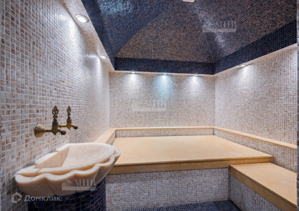 1 этаж: холл, гардеробная, гостиная с дровяным камином, кухня-столовая с выходом в сад, с/у, котельная, бассейн 5*8 метров, хаммам и комнатой отдыха.