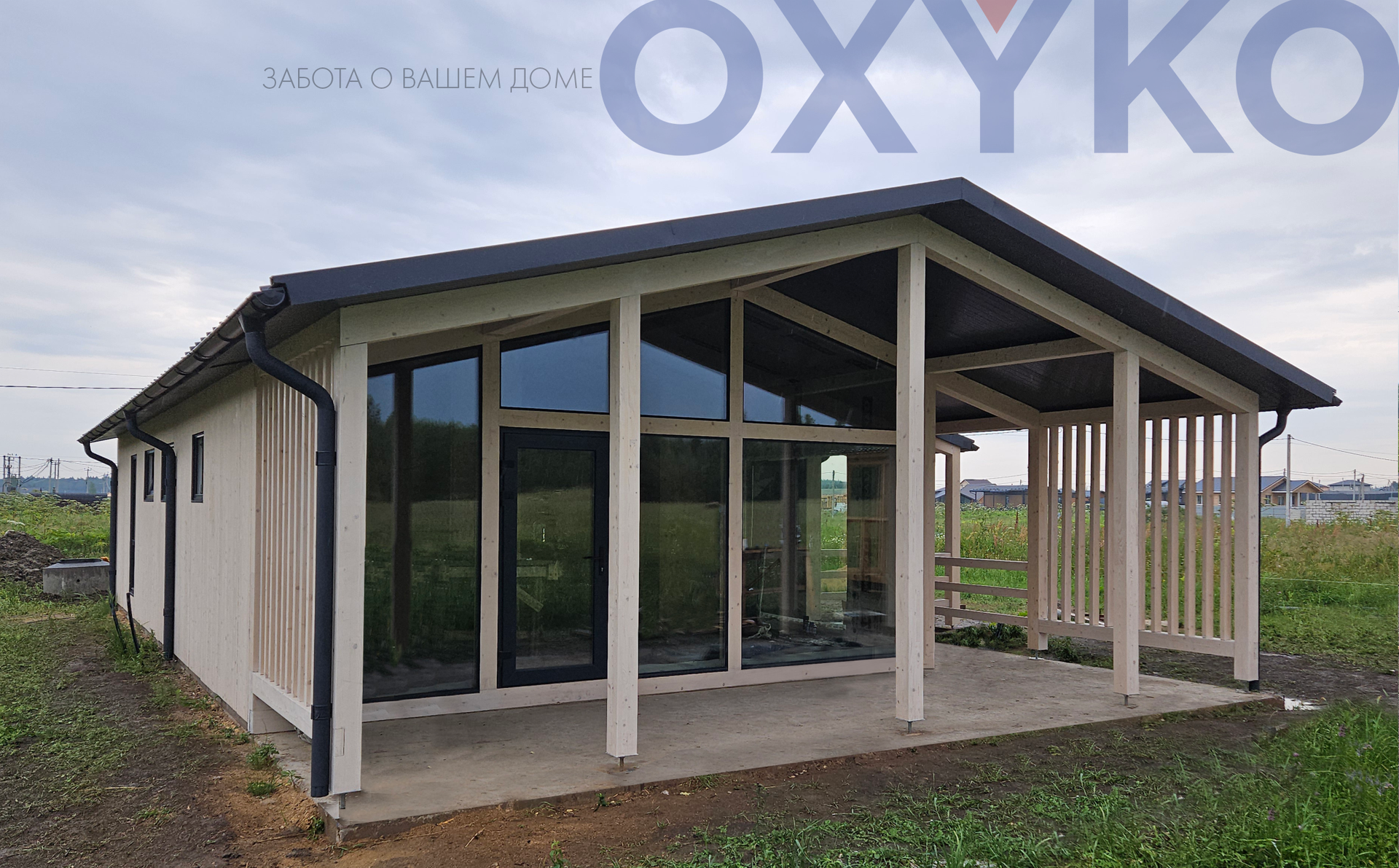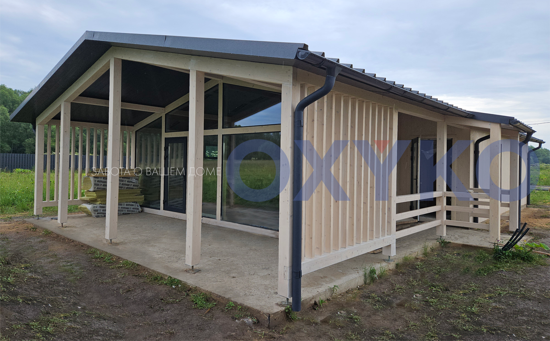 Дом класса КОМФОРТ+ построенный по технологии фахверк + CLT с собственной сауной.