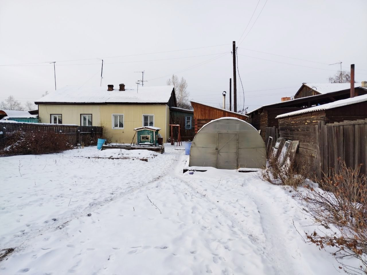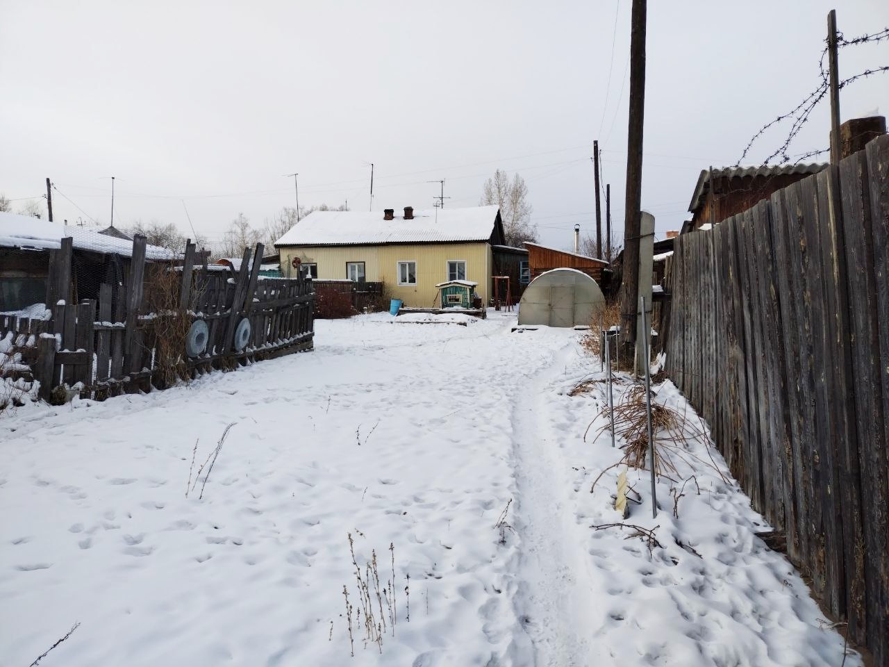 Участок по документам 9 соток, по факту 12. На участке: тепляк, баня 2015 года постройки, стайки, сеновал, вольер для собаки, теплица поликарбонат, есть место для гаража, различные насаждения: ранетка, вишня, смородина, малина, жимолость, есть клубника и черемуха. Участок огорожен, въезд на участок возможен с двух противоположных сторон, что очень удобно. Во дворе скважина с глубинным насосом, бесперебойный полив с апреля по октябрь.