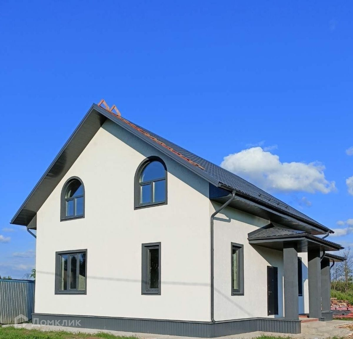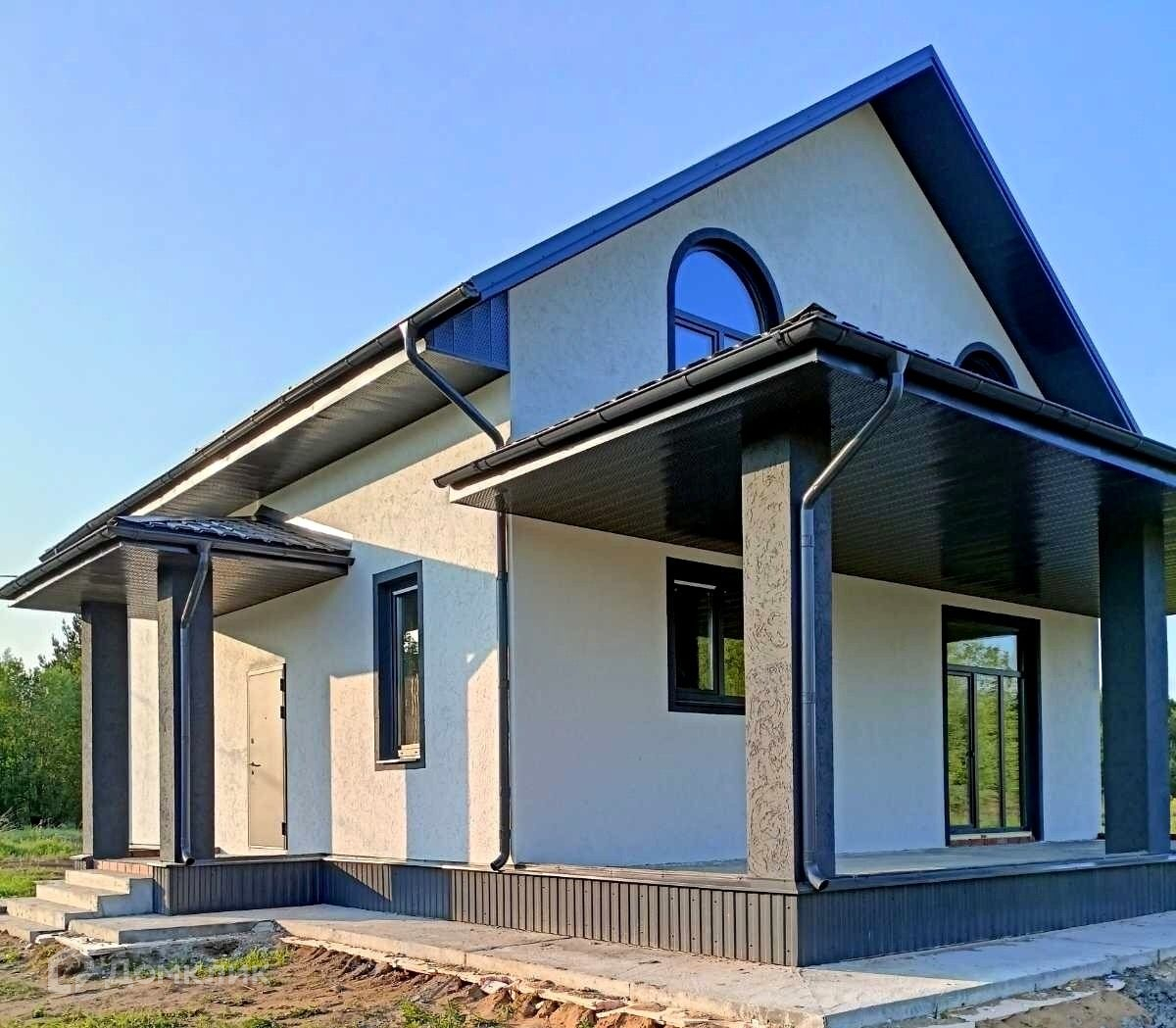 Дом 150 кв.м из газоблока с открытой террасой 30 кв.м. Участок - 20 соток, в подарок - прилегающий участок 10 соток в аренде до 2058 года. Дом построен по проекту. Фундамент ленточный. Несущие стены - газобетон. Материал облицовки - штукатурный фасад. Кровля - металлочерепица.