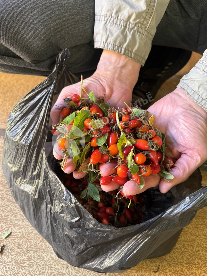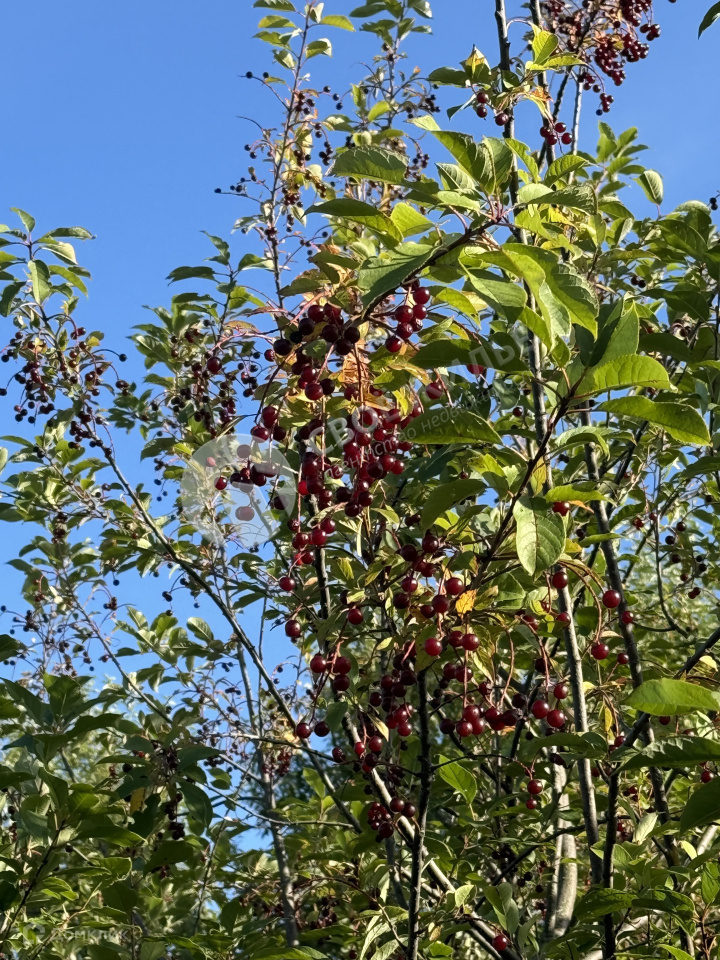 На участке много плодовых деревьев и кустарников.