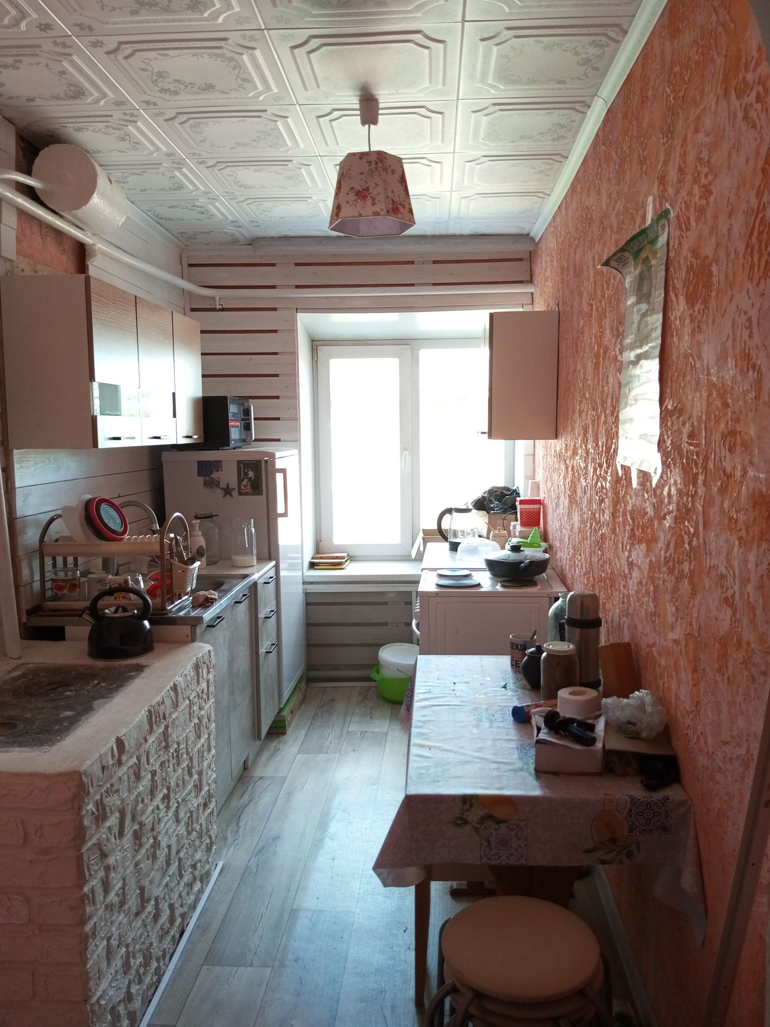 Квартира с печным отоплением,очень тёплая,в квартире остаётся мебель,произведён частичный косметический ремонт,есть душевая кабина.