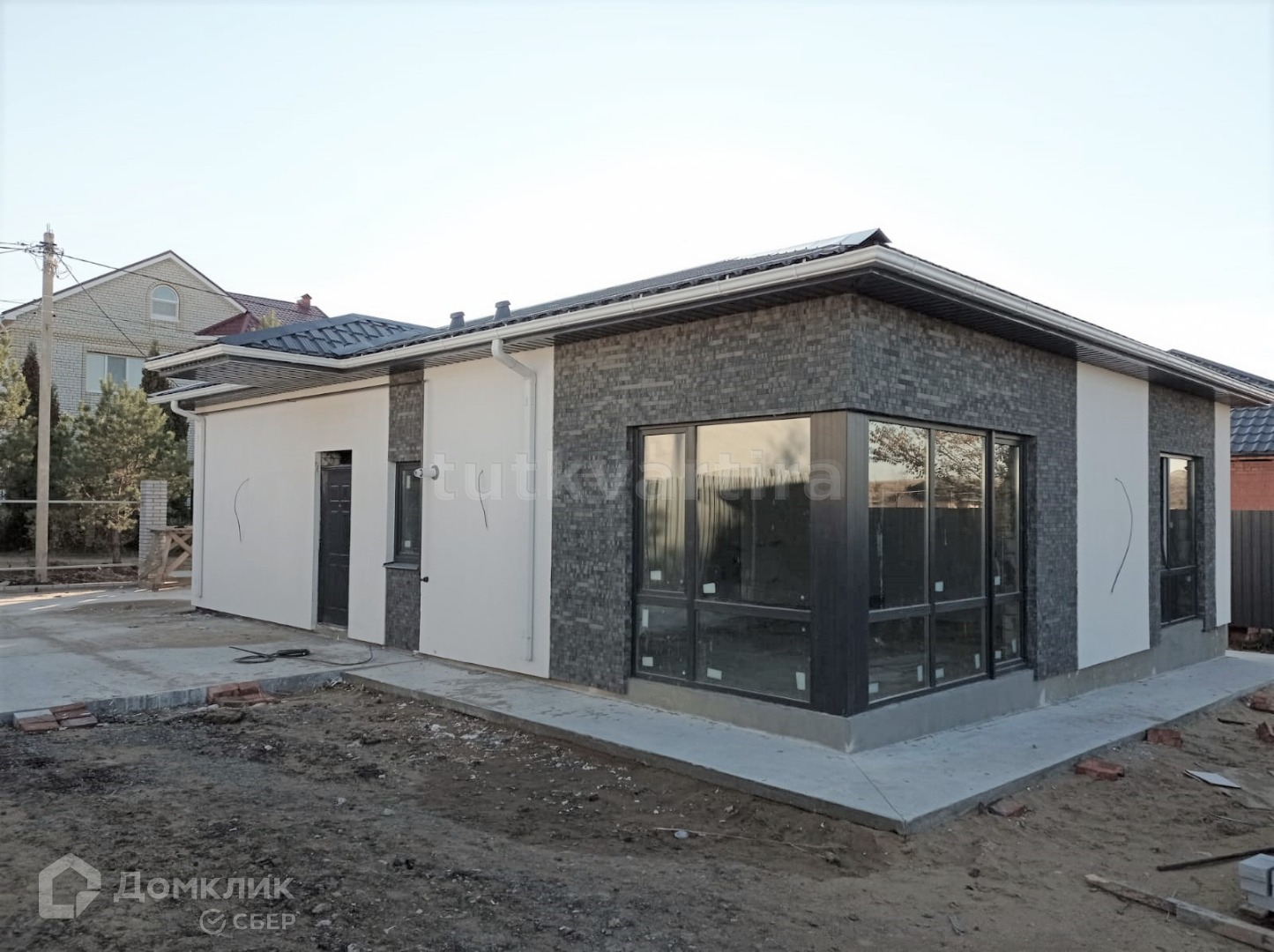 Отделка: дом имеет предчистовую отделку. Отопление, электроэнергия, водоотводы, канализация, на окнах пластиковые стеклопакеты, входная металлическая дверь. Отопление теплый водяной пол. Установлен газовый котел. Просторная кухня; Увеличенная инсоляция — витражное остекление. Просторная прихожая правильной формы.