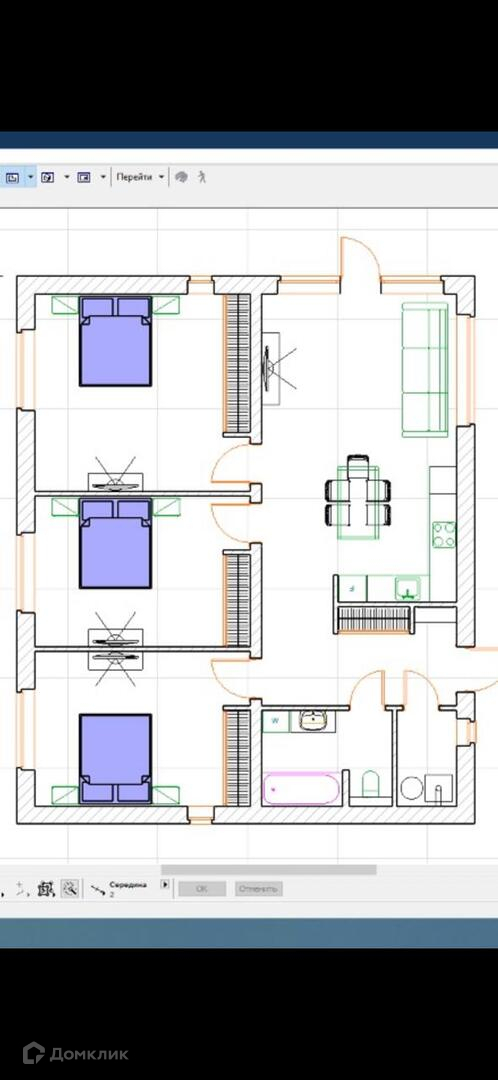 В доме 3 больших спальных комнаты, просторная кухня-гостиная, гардероб, санузел.