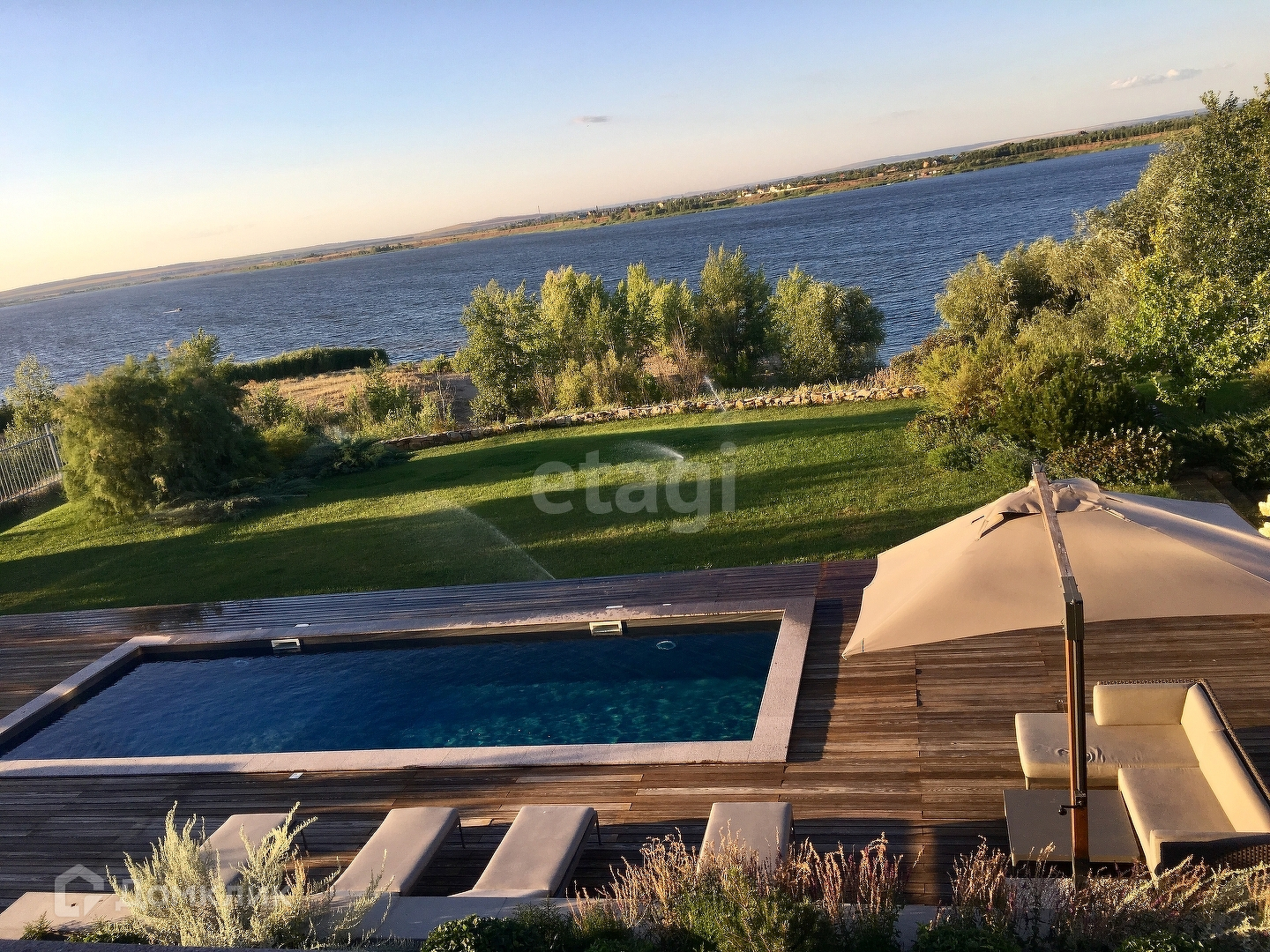 Продам современный двухэтажный дом площадью 285 м2, с террасами-527,6 кв.м на земельном участке 32 сотки. Также на территории находится дом охраны-17 кв.м, открытый бассейн-42 кв.м, хозблок с погребом-26 кв.м, детская площадка. Концепция единения с природой легла в основу проекта усадьбы в стилистике американского архитектора. Участок имеет«Г»-образную форму и умеренный ландшафт с перепадом высот 1-1,5 м в сторону реки.На расстоянии около 300м с северной стороны,в визуальной доступности,протекает река Волга . Произведено укрепление склонов оврагов,устройство подходов и подъезда,посадка низкой и высокой зелени,устройство газонов и цветников, элементов освещения и садовой мебели.Автополив всей территории. На первом этаже холл,гостиная,столовая,кухня,гостевой санузел,кладовая,постирочная,мастерская,помещение гаража на одно машиноместо, электрощитовая,котельная. Помещение гаража сблокировано с банным комплексом и помещением истопной бани,имеющими отдельные входы с улицы. В банном комплексе размещаются помещения гостиной с мини кухней,предбанник с душевой,санузел и парная. По периметру здания,террасы,выполненные частично в деревянных конструкциях,частично кирпиче и железобетоне. На северной террасе место для барбекю с жаровней . В гостиной основного здания,одной из спален и гостиной банного комплекса камины,выполненные из специального кирпича. На мансардном втором этаже-балкон-библиотека,две спальни,две гардеробные комнаты,две ванные. Из спален имеется выход на террасы и входы в ванны .На одной из террас открытая лестница,ведущая на террасу первого этажа.На второй террасе в конструкции ограждения цветники с возможностью высадки растений в естественный грунт. По проекту на уровне первого этажа размещена котельная с размещением 2х газовых котлов De Dietrich,работающих в автоматизированном режиме,без присутствия обслуживающего персонала. Система отопления двухтрубная с нижней разводкой подающих и обратных магистралей. В котельной предусмотрена установка водомерного узла бойлера и системы очистки воды . Канализация -система «Топаз». Наружные поверхности стен на уровне 1-ого и 2-ого этажей отделаны частично многослойной декоративной штукатуркой,частично клинкерной керамической плиткой имитирующей кирпич ручной формовки,цоколь облицован натуральным камнем,медная кровля и водостоки. Полы-керамическая плитка и натуральный камень,половая паркетная массивная доска. Панорамные оконные изделия-деревянные с двойным стеклопакетом индивидуального изготовления производства Литвы. Дверные изделия-деревянные с двойным стеклопакетом филенчатые. Специальные двери металлические. Сантехприборы-импортные,производства Англии и Италии. Мебель спальная,мягкая и кухонная-производства Италии. Освещение-производства Америки. Антенная система НТВ Плюс. Выполнена пожарная сигнализация во всем доме. Дом абсолютно готов для проживания в любое время года! Доп. описание: отопление: газовое, канализация: септик, также имеются: интернет, кабельное телевидение, кондиционер, воздушные фильтры, фильтры для воды, бассейн, котельная, камин, погреб, сауна, кухонный гарнитур, шкаф-купе, плита, мягкая мебель