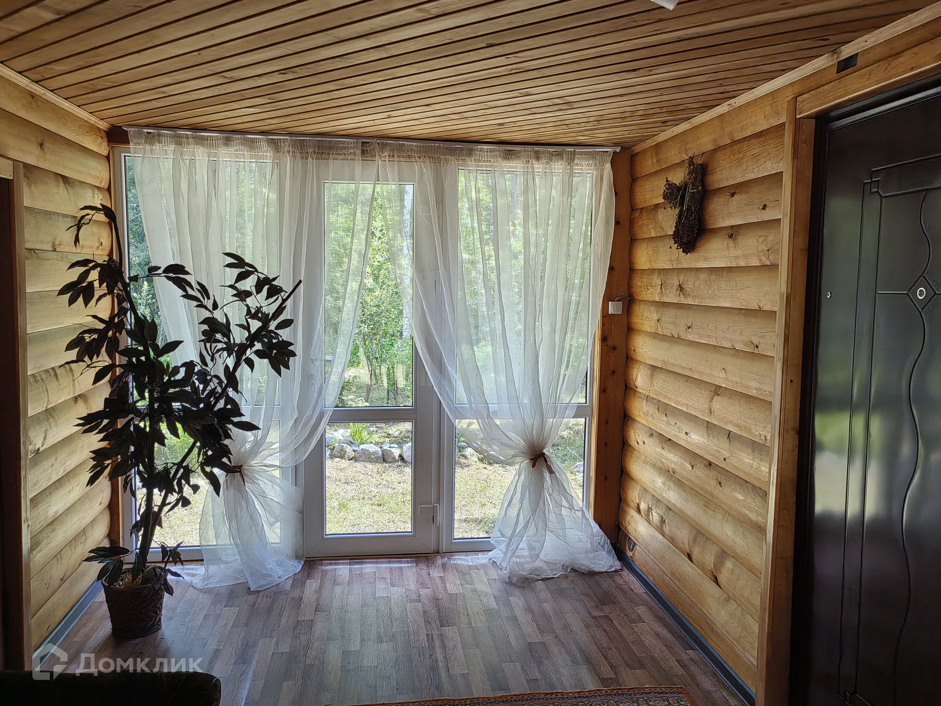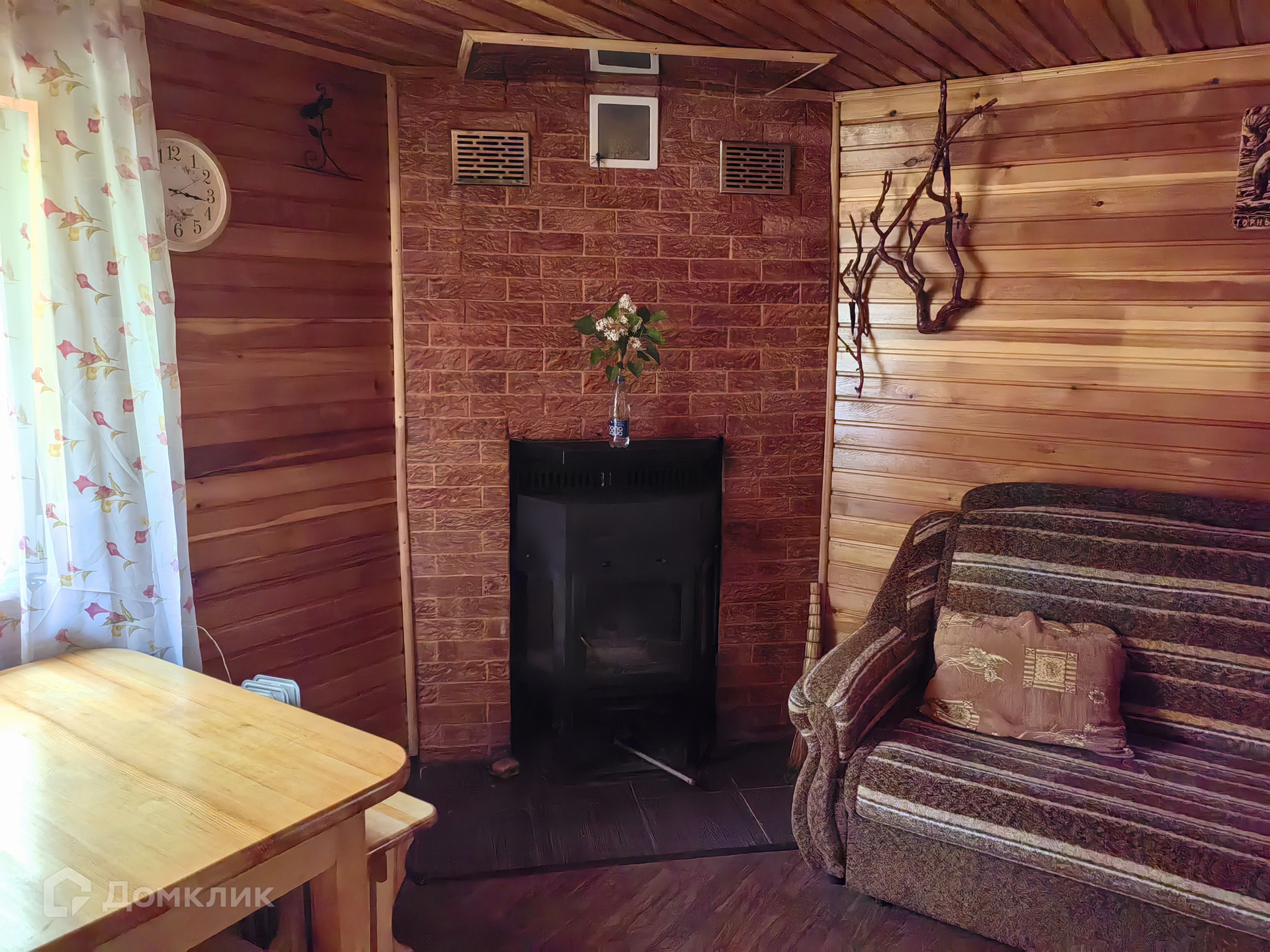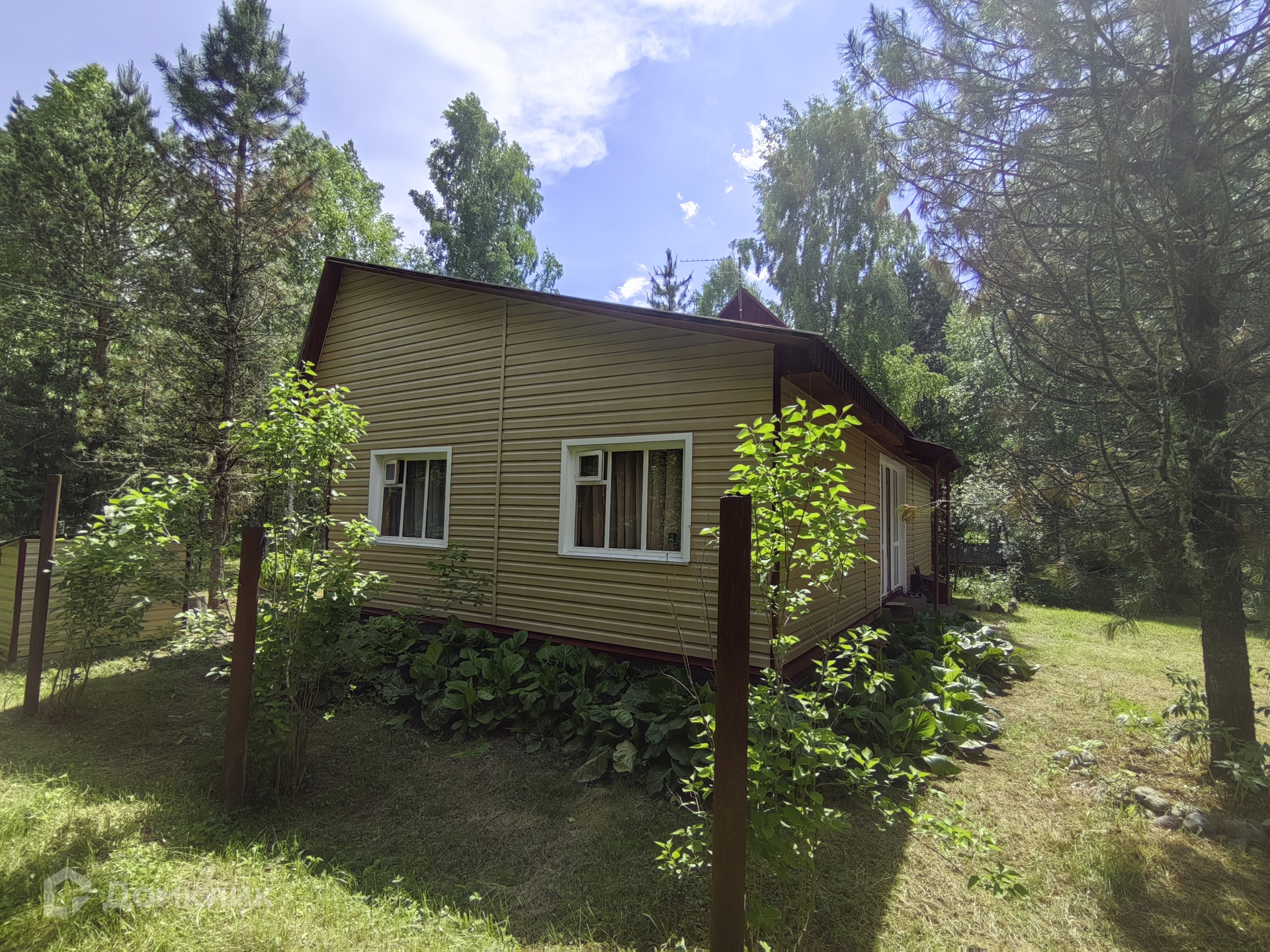 В доме 4 комнаты (кухня гостиная, 3 спальни), горячая, холодная вода, туалет, отопление (камин), большая веранда, панорамные окна, с выходом во двор и сад. Дом выполнен из бруса, утепленный, (обшит сайдингом снаружи, внутри отделка кедровой вагонкой), полон света – большие окна (пластиковый стеклопакет) в каждой комнате.