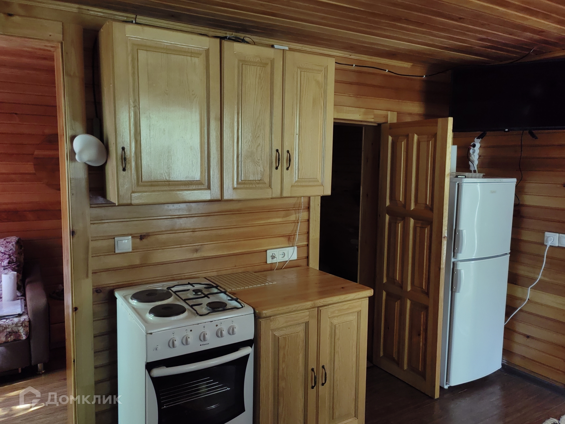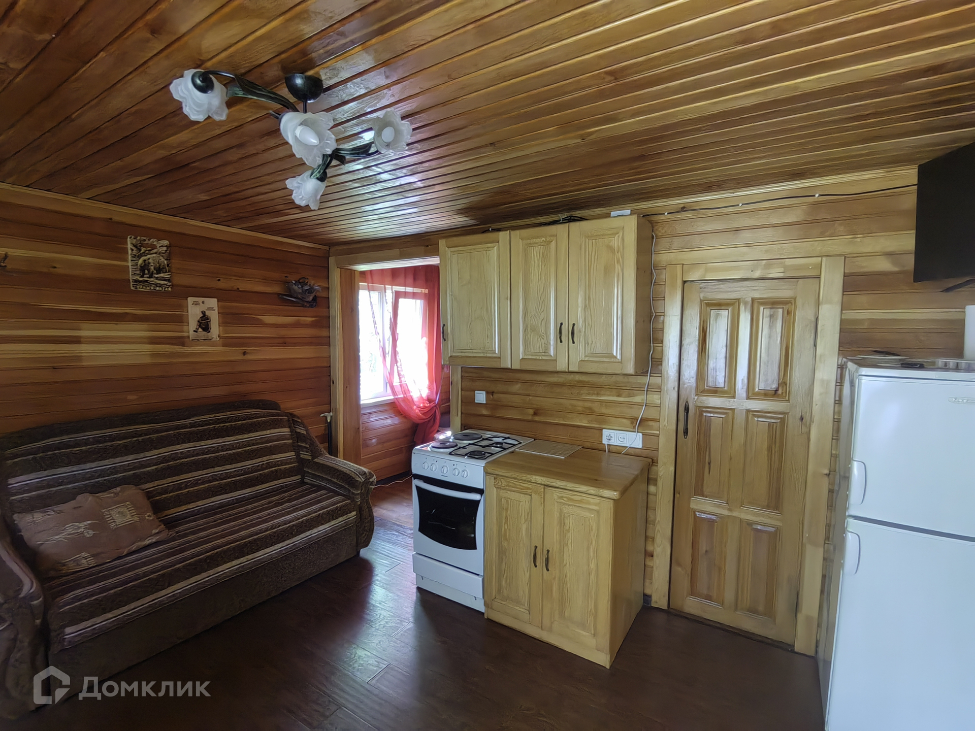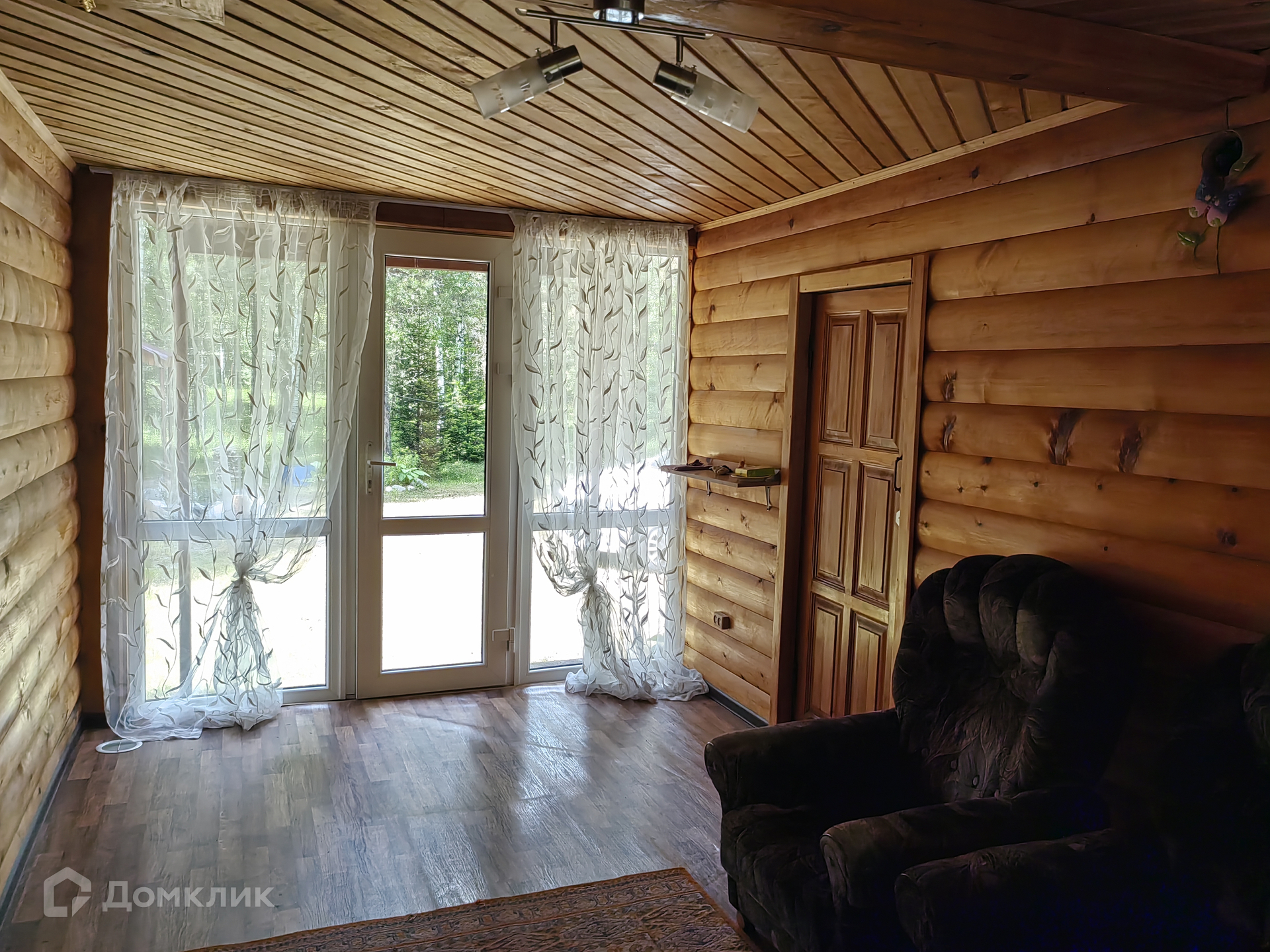 В доме 4 комнаты (кухня гостиная, 3 спальни), горячая, холодная вода, туалет, отопление (камин), большая веранда, панорамные окна, с выходом во двор и сад. Дом выполнен из бруса, утепленный, (обшит сайдингом снаружи, внутри отделка кедровой вагонкой), полон света – большие окна (пластиковый стеклопакет) в каждой комнате.