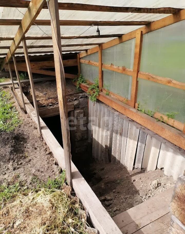 На участке баня 4х4 из бруса, на фундаменте. Около бани находится погреб.